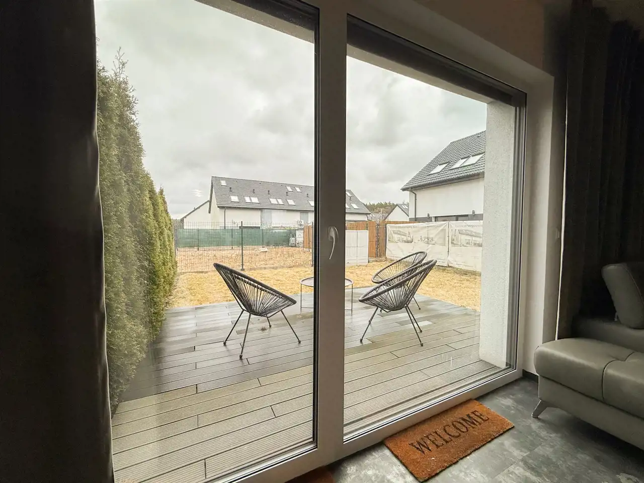 Dużą uwagę poświęcono również estetyce części wspólnych. Na terenie osiedla zaplanowano starannie dobrane nasadzenia zieleni, które tworzą przyjazny, uporządkowany charakter miejsca i sprawiają, że przestrzeń wokół domów jest przyjemna oraz harmonijna.