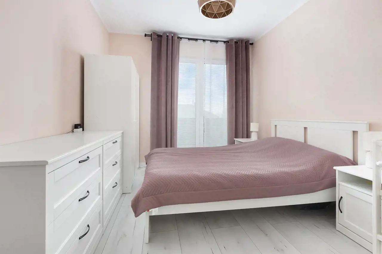 Główna sypialnia posiada wyjście na balkon – idealne miejsce na poranną kawę, chwilę relaksu lub przewietrzenie pomieszczeń.