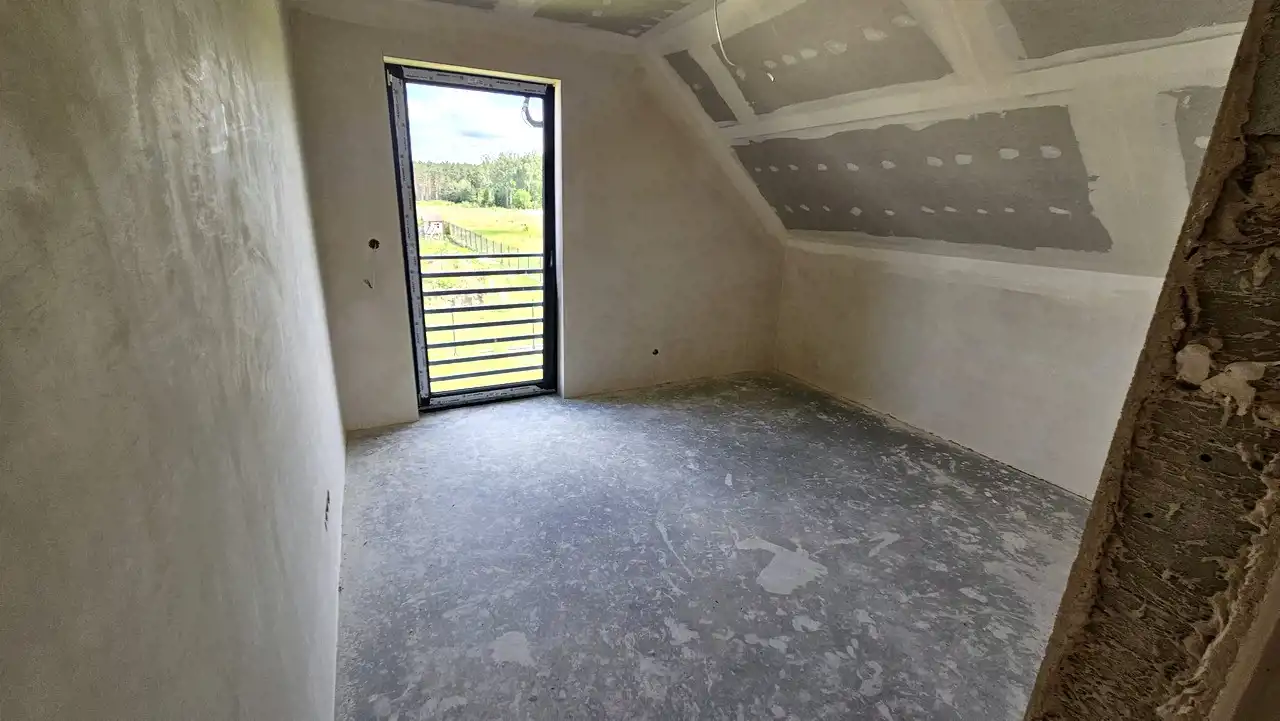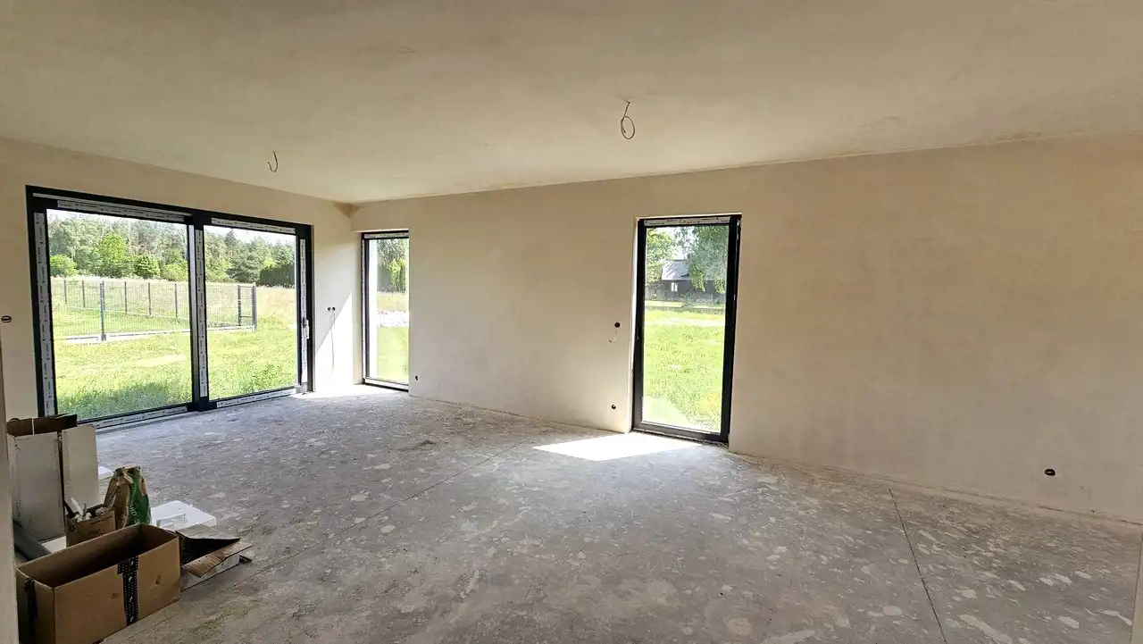 Duża działka. 5 pokoi, 2 łazienki. Stan deweloperski + (z drzwiami i schodami).