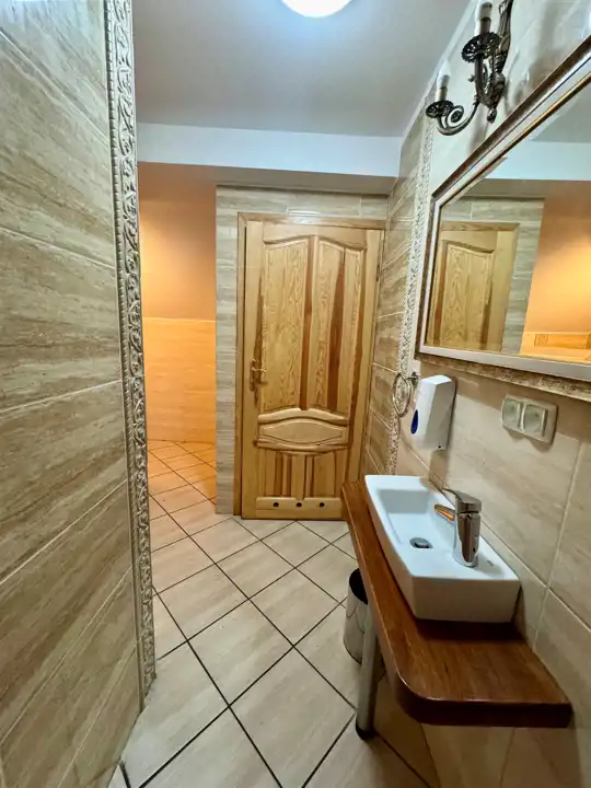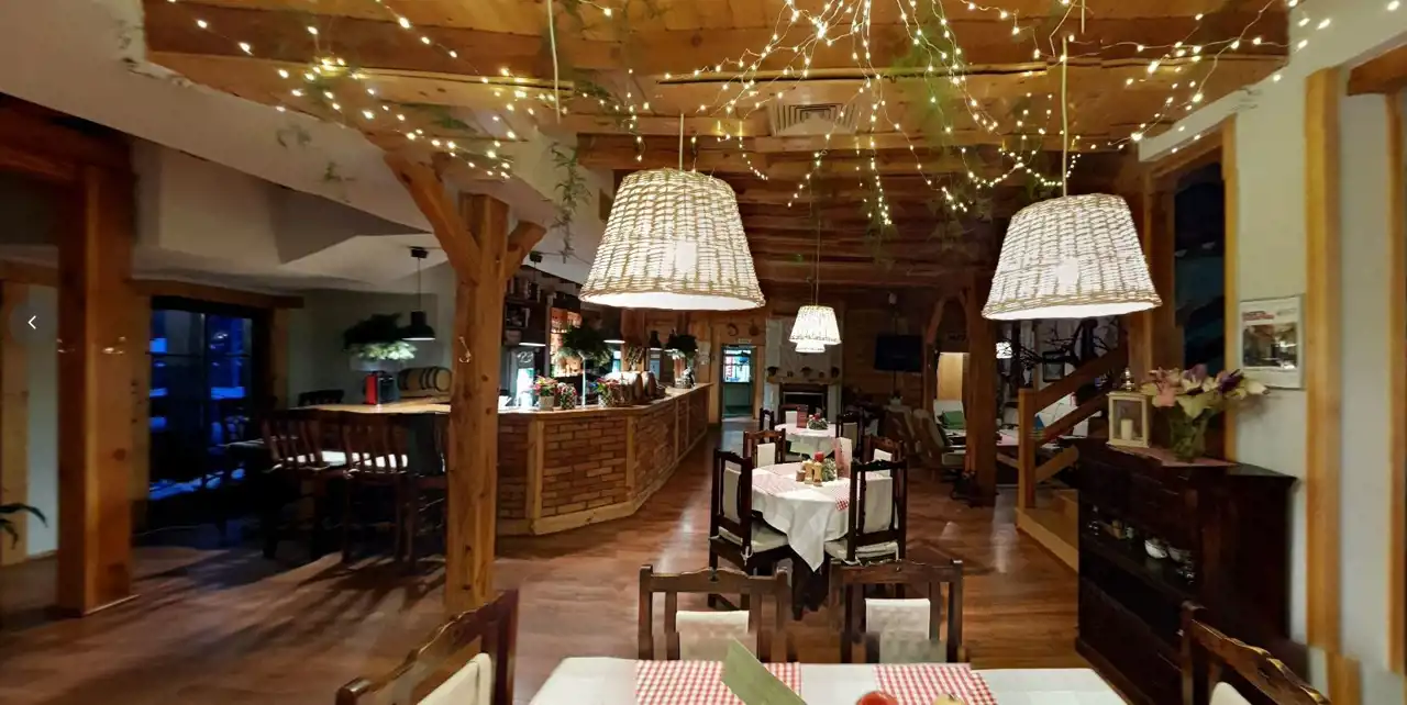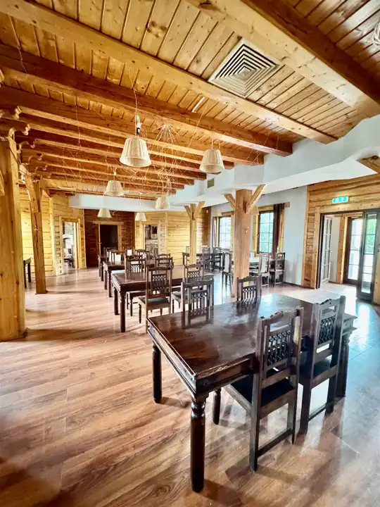 W głównej części budynku znajduje się przestronna restauracja z wyposażoną kuchnią, restauracja składa się z dwóch dużych sal: dolną oraz górną, którą można przeznaczyć na organizację małych wesel, przyjęć i konferencji, ponadto ma cztery małe salki (alkierze), idealne na spotkania rodzinne czy biznesowe. Z restauracji można wyjść na przestronny taras oraz do ogrodu.