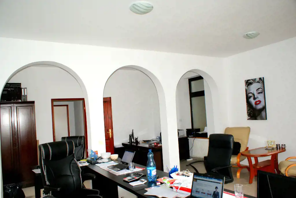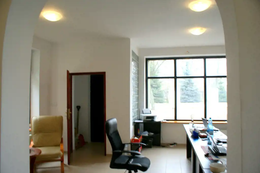 Biuro wolne od 1 kwietnia. Dzieli się na główne biuro o pow. 40 m2, zaplecza z kuchnią o pow. 10 m2 oraz toalety. Całość w pełni wykończona. Na podłogach znajdują się kafelki, ściany wykończone w gładzi, okna PCV z antywłamaniowymi szybami. Ogrzewanie gazowe. Wyposażenie widoczne na zdjęciach nie jest wliczone w cenę.