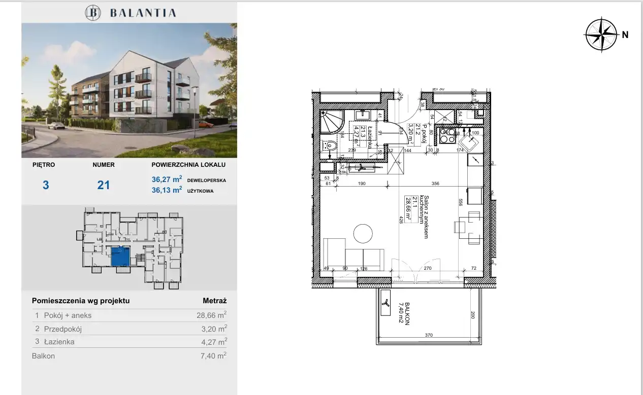 - balkon o powierzchni 7,40 m2