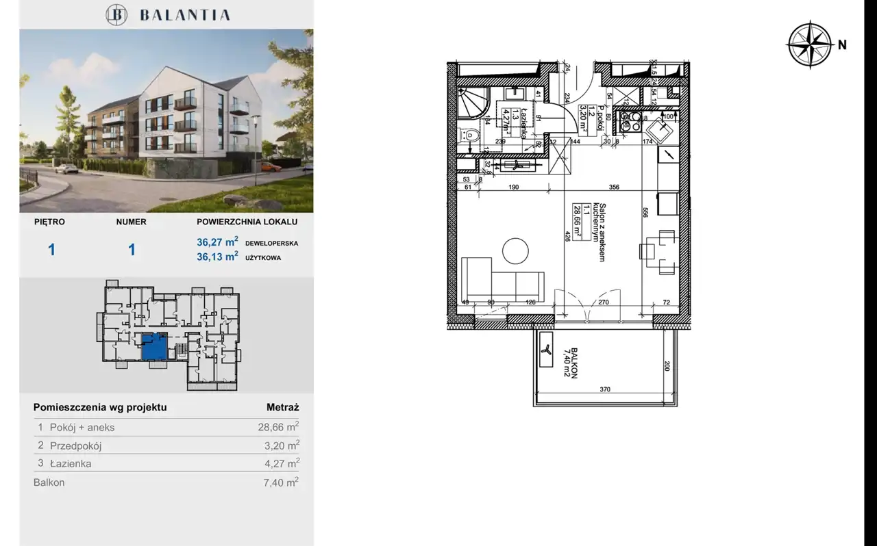 - Charakterystyka mieszkania 36.13 m2, 1 pokój