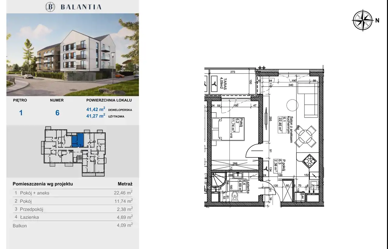 - Charakterystyka mieszkania 41.27 m2, 2 pokoje