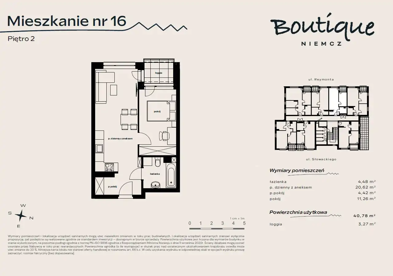 Powierzchnia użytkowa mieszkania 40,78 m2