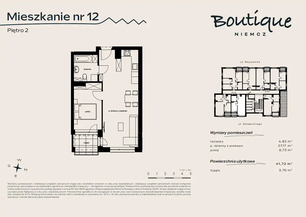 - Charakterystyka mieszkania 41.72 m2, 2 pokoje