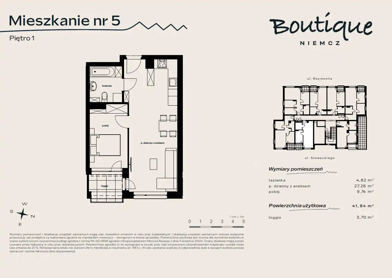- Charakterystyka mieszkania 41.84 m2, 2 pokoje