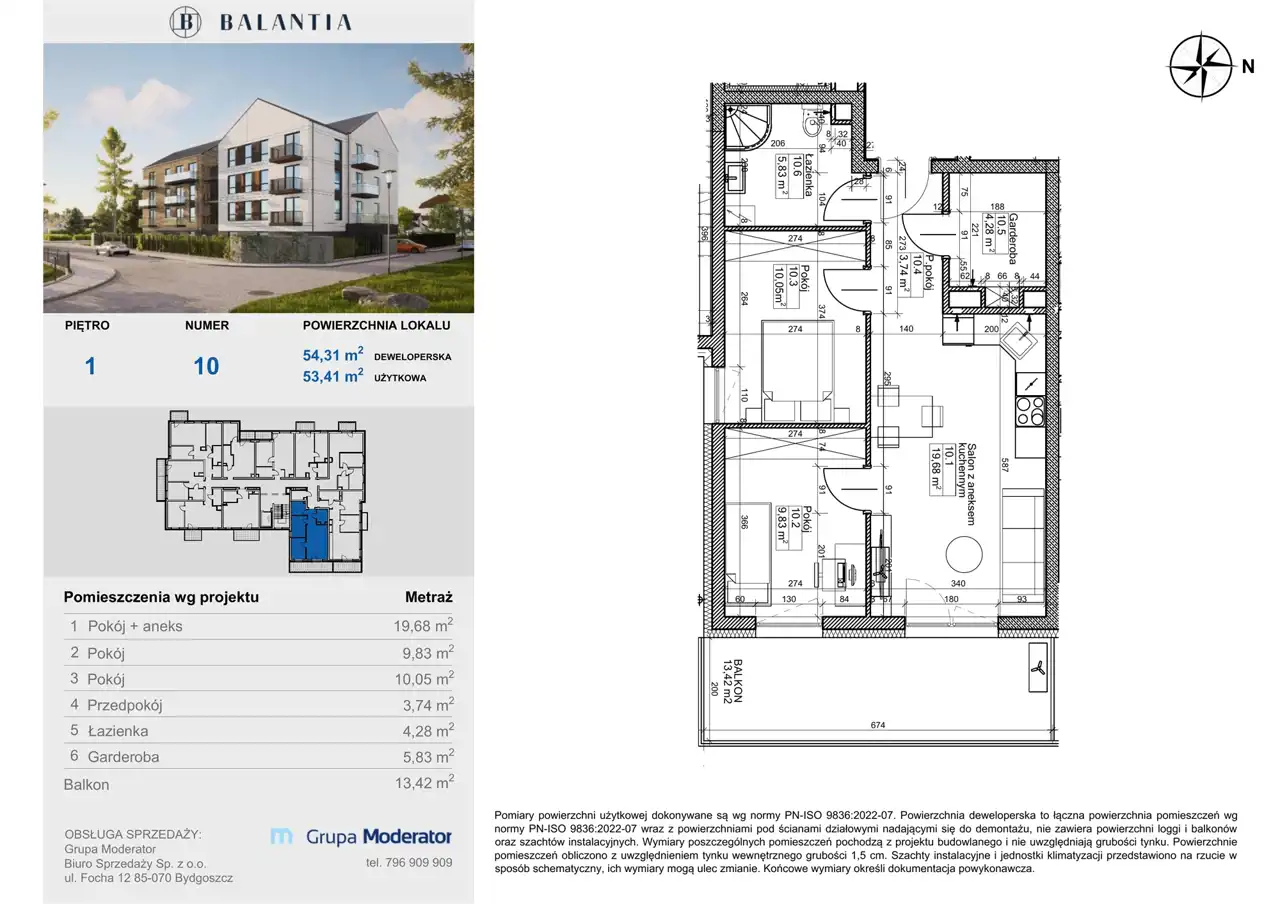 - Charakterystyka mieszkania 53.41 m2, 3 pokoje