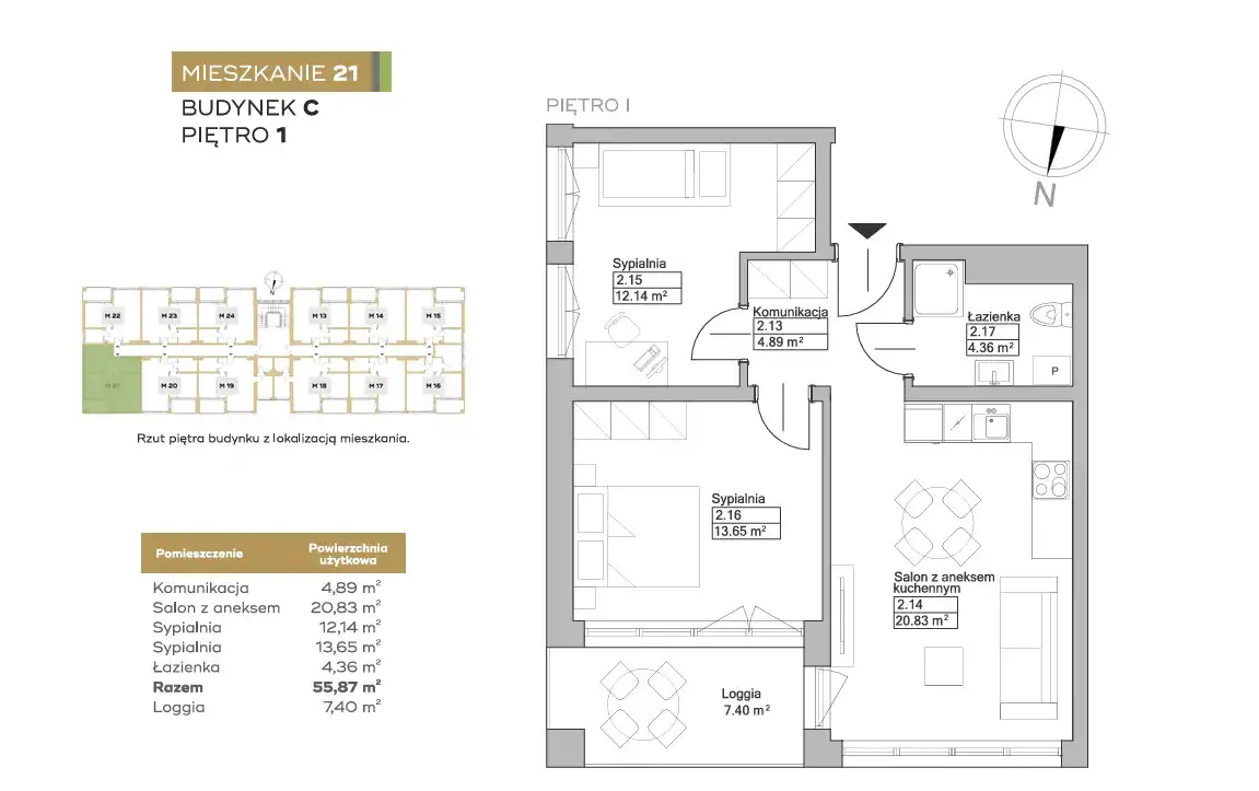 - Charakterystyka mieszkania 55.87 m2, 3 pokoje