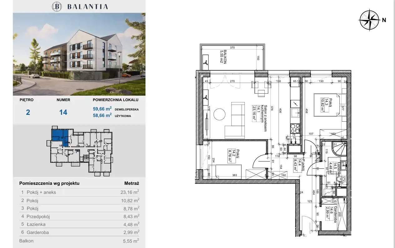 - balkon o powierzchni 5,55 m2