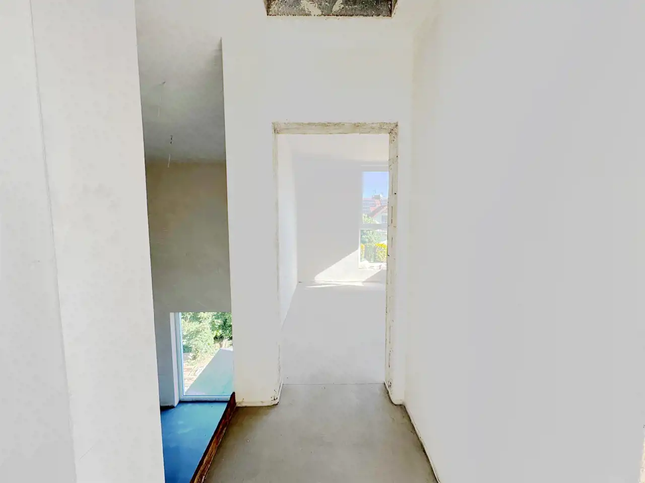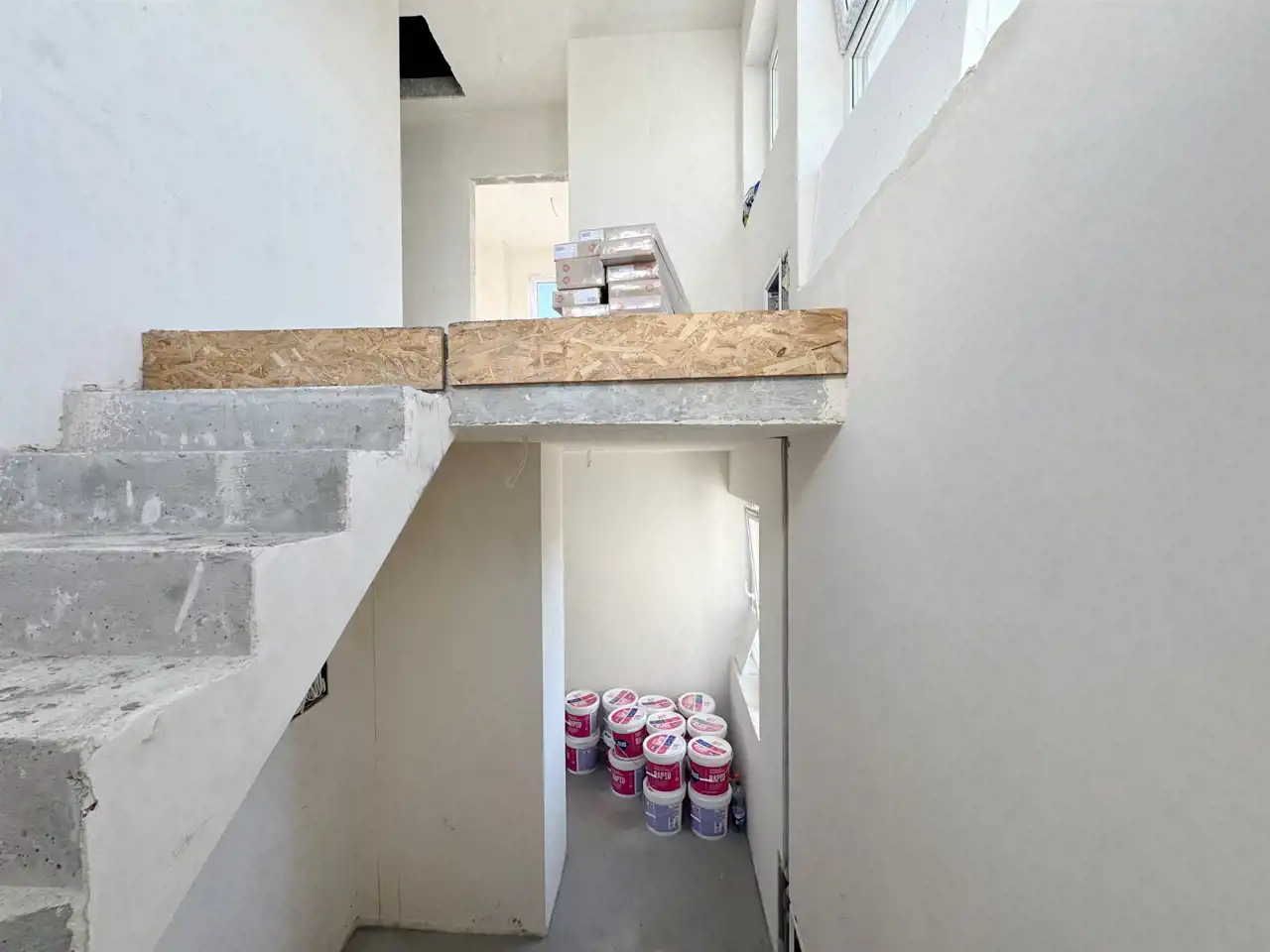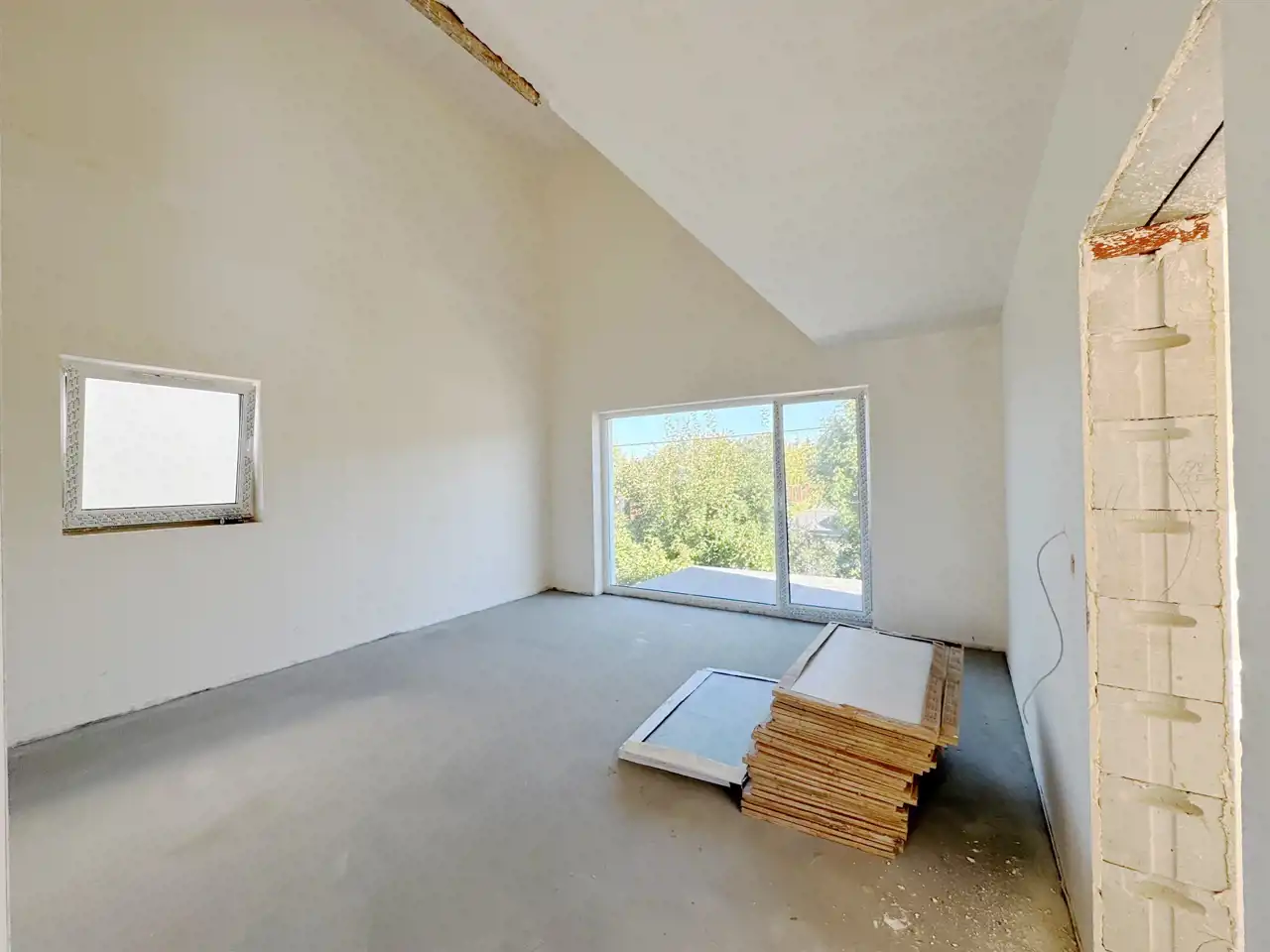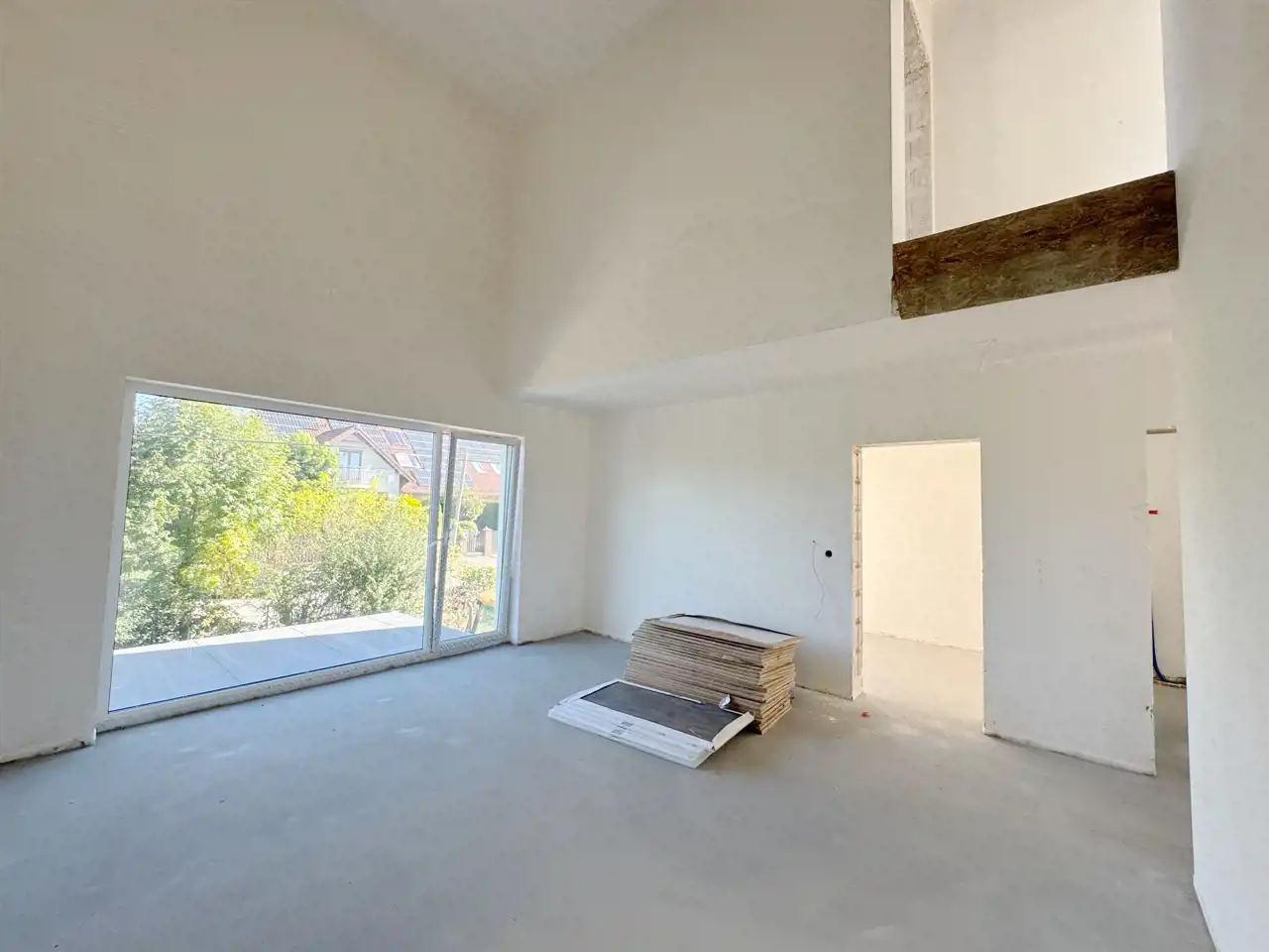 - Wykończenie wewnętrzne – tynki gipsowe przygotowane pod malowanie, wylewki betonowe podłóg ze styropianową izolacją.