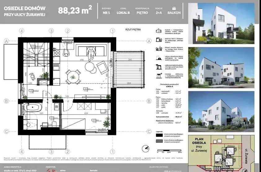 - Charakterystyka mieszkania 88.23 m2, 3 pokoje