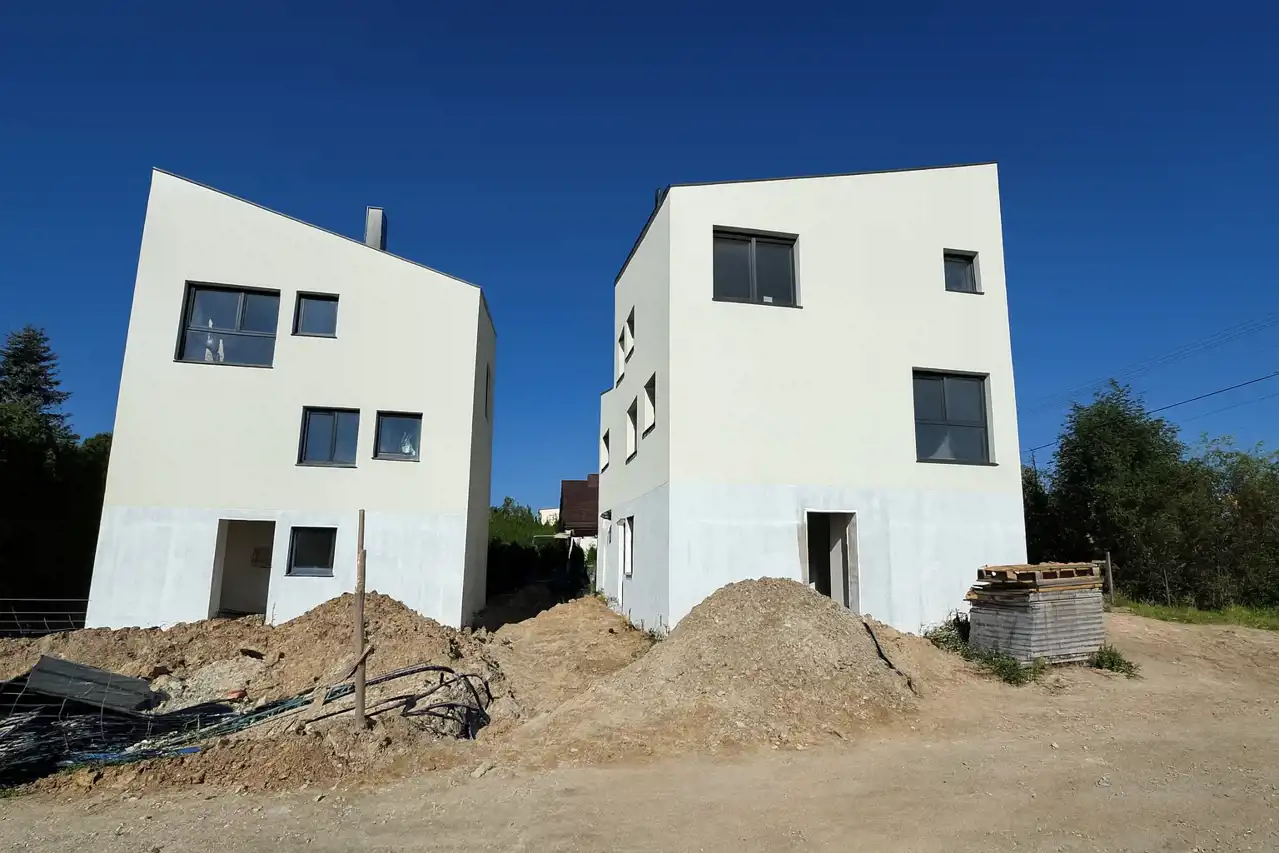 - Solidna konstrukcja – ściany fundamentowe zewnętrzne wykonano z bloczków betonowych, ocieplono styropianem o grubości 18 cm i zabezpieczono izolacją przeciwwilgociową zarówno pionową, jak i poziomą. Ściany wewnętrzne fundamentowe powstały z bloczków betonowych lub betonu, natomiast ściany nośne z betonu komórkowego o grubości 24 cm, dodatkowo ocieplone minimum 18-centymetrową warstwą styropianu. Ściany działowe wykonano z betonu komórkowego o grubości 12 cm.