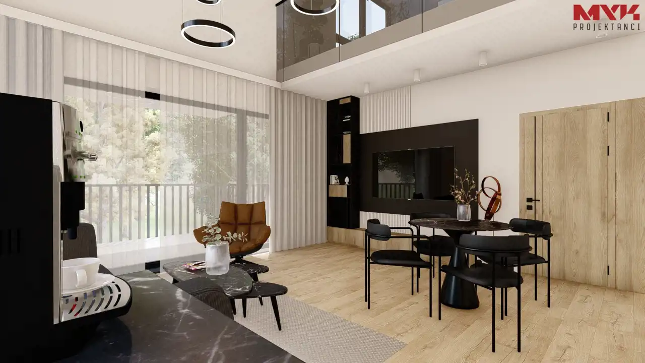 Po przekroczeniu progu mieszkania wita Cię jasny przedpokój z miejscem na okrycia wierzchnie. Dalej czeka prawdziwe serce domu – przestronny salon z aneksem kuchennym (24 m²), którego dopełnieniem jest antresola sięgająca aż po dach. To wnętrze zachwyca przestrzenią i wysokością! Z salonu wyjdziesz też na słoneczny balkon (8 m²) – idealne miejsce na poranną kawę lub wieczorny relaks.