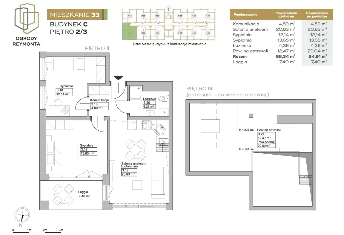 - Charakterystyka mieszkania 68.34 m2, 4 pokoje