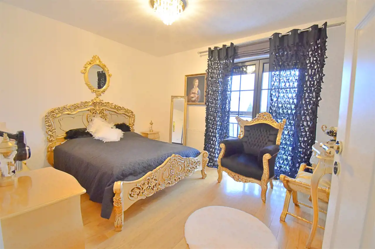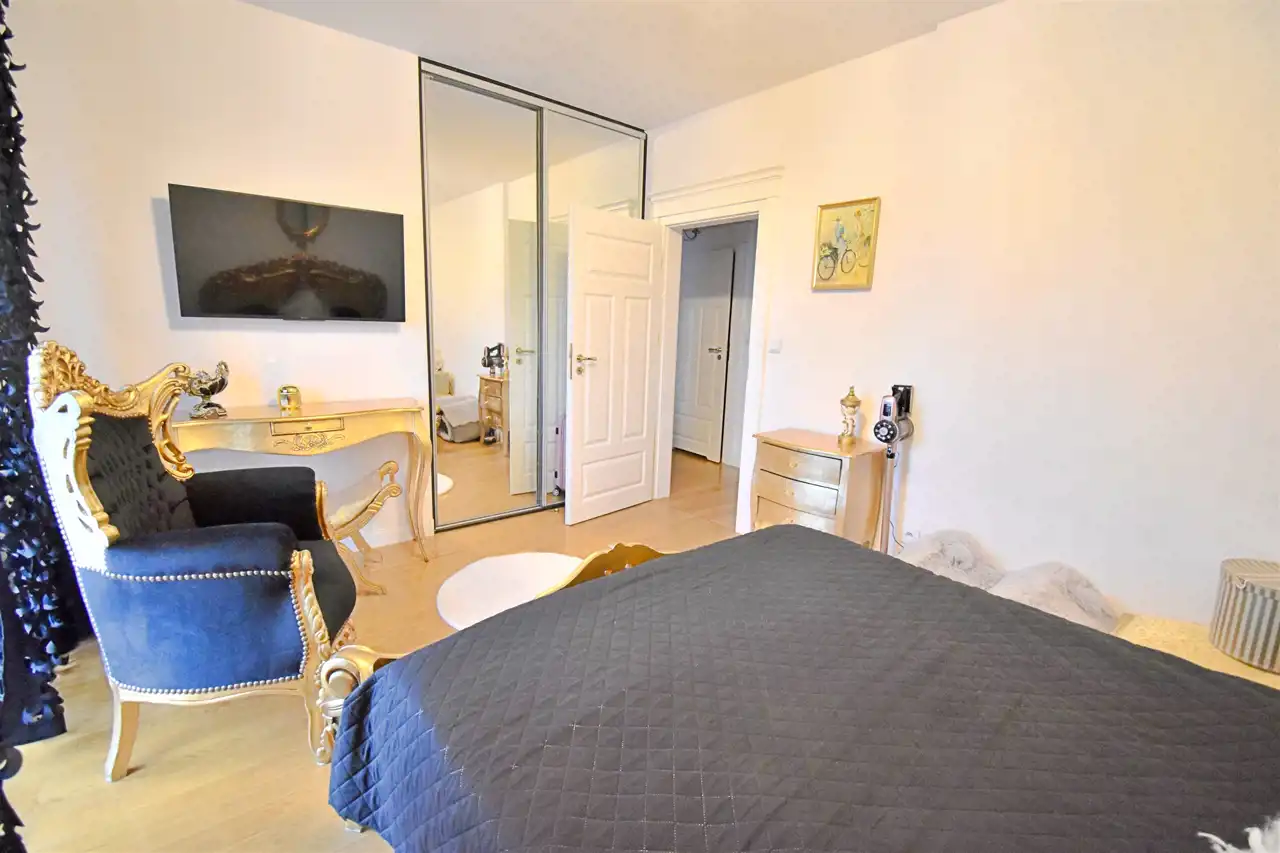 - Sypialni głównej z dużą szafą wnękową (15 m²) i północną wystawą okien