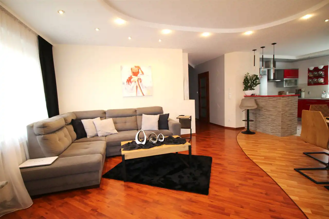 - piękny przestronny salon z jadalnią o powierzchni 28 m², z bezpośrednim wyjściem na słoneczny, 12-metrowy taras;