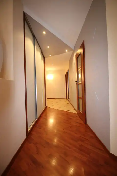 - obszerny korytarz (14m2) z trzyskrzydłową zabudową typu komandor, a także drugą zabudowaną szafą na wierzchnie okrycia.