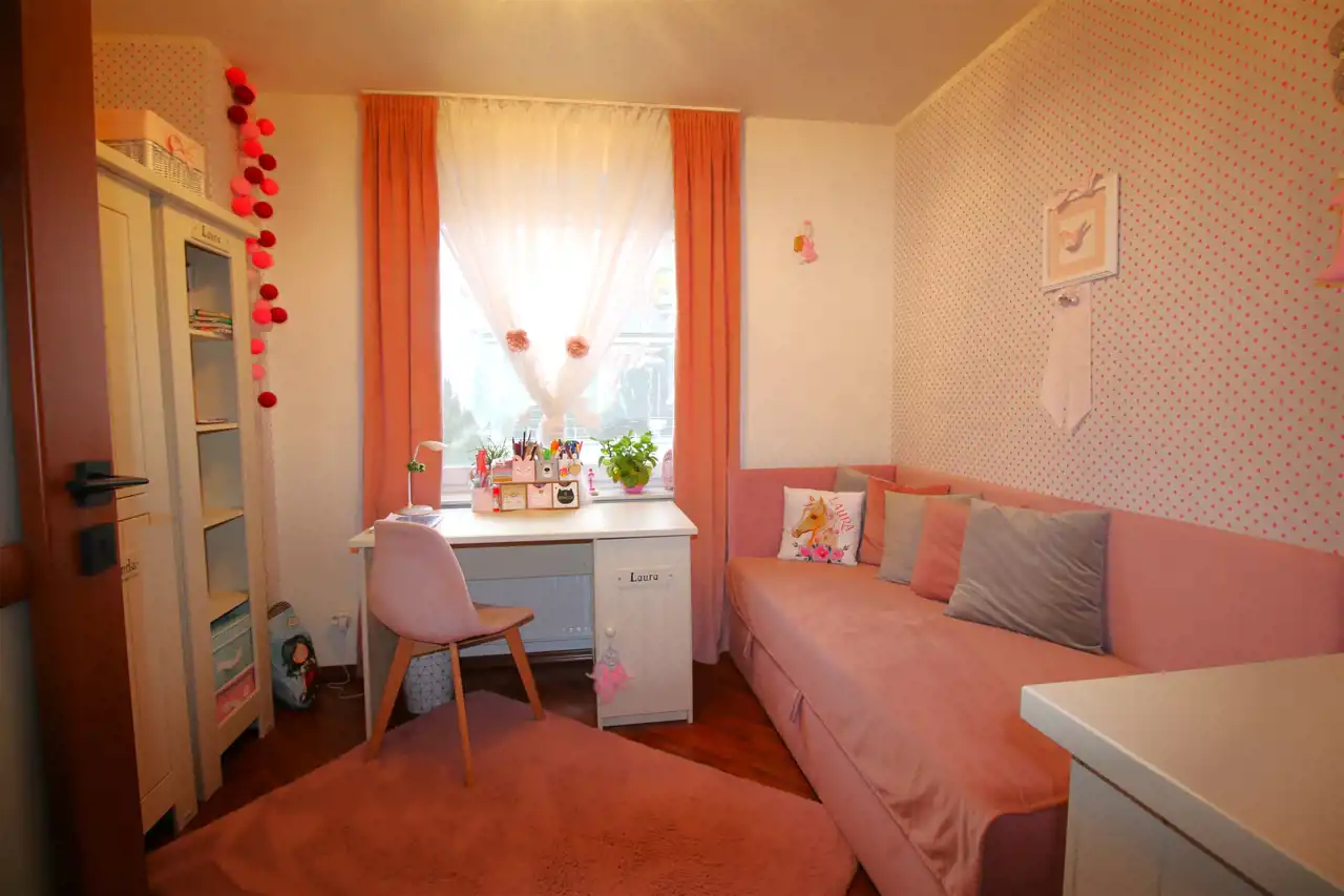 - sypialnię o pow. 10m2, będącą dziś pokojem dziecięcym