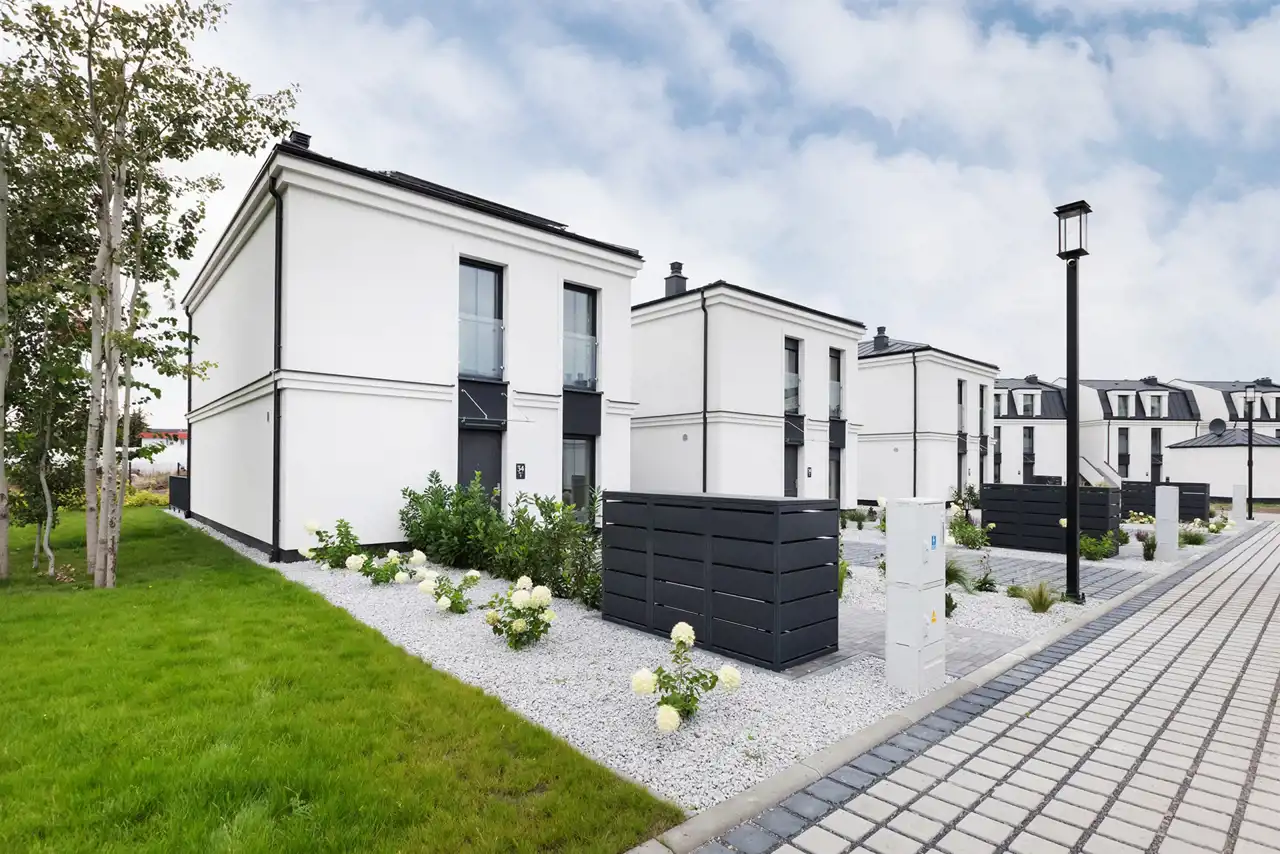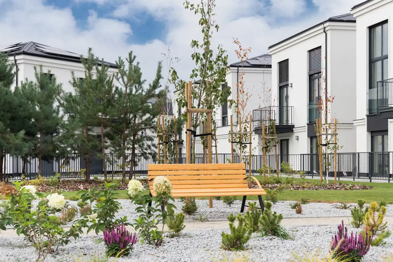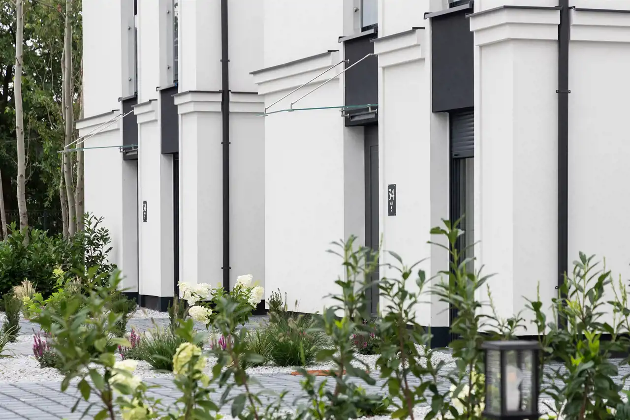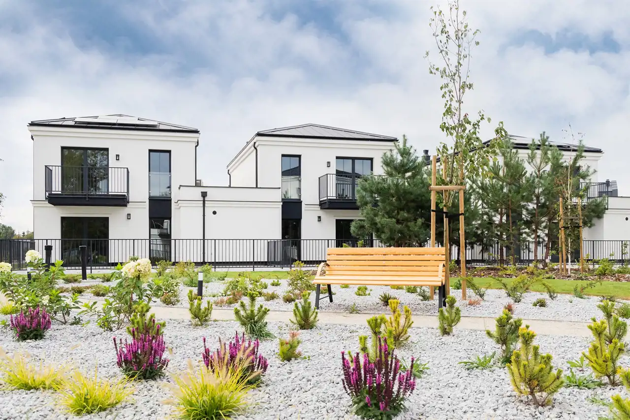 Na zamkniętym i monitorowanym osiedlu znajduje się niska i stylowa zabudowa.