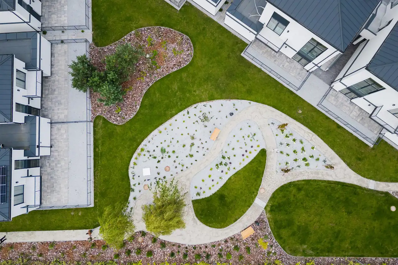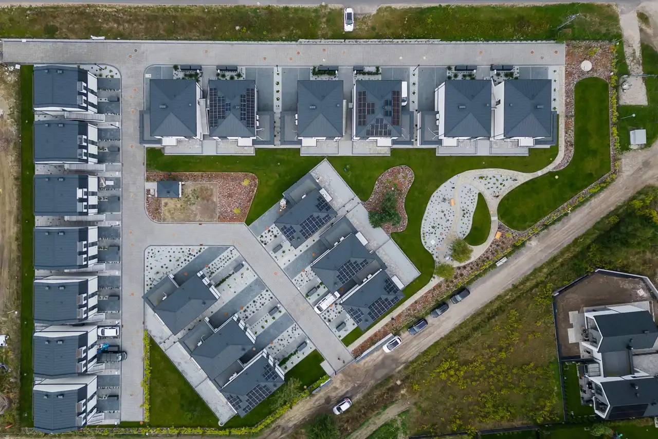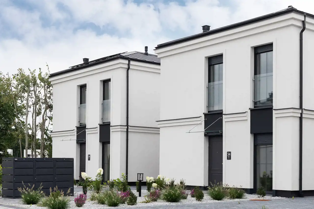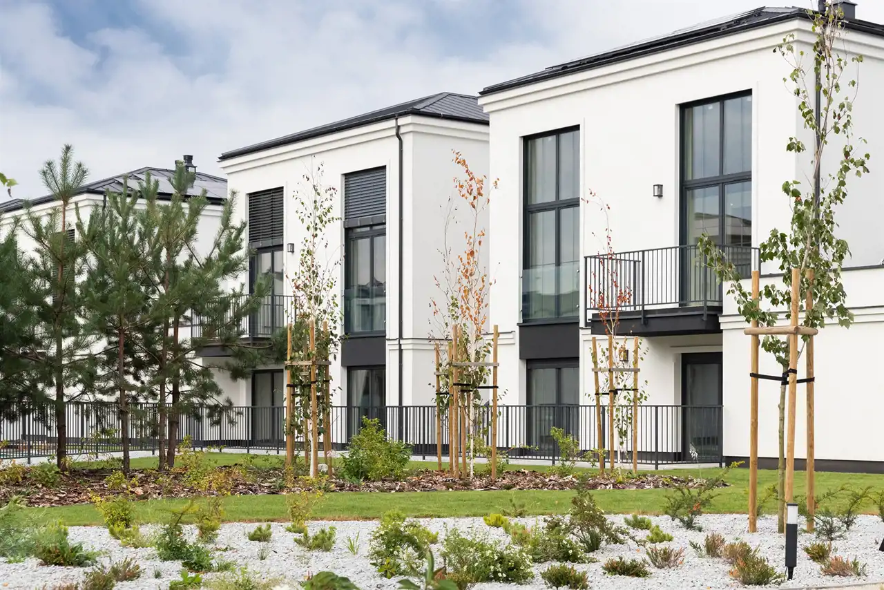Na zamkniętym i monitorowanym osiedlu znajduje się niska i stylowa zabudowa.