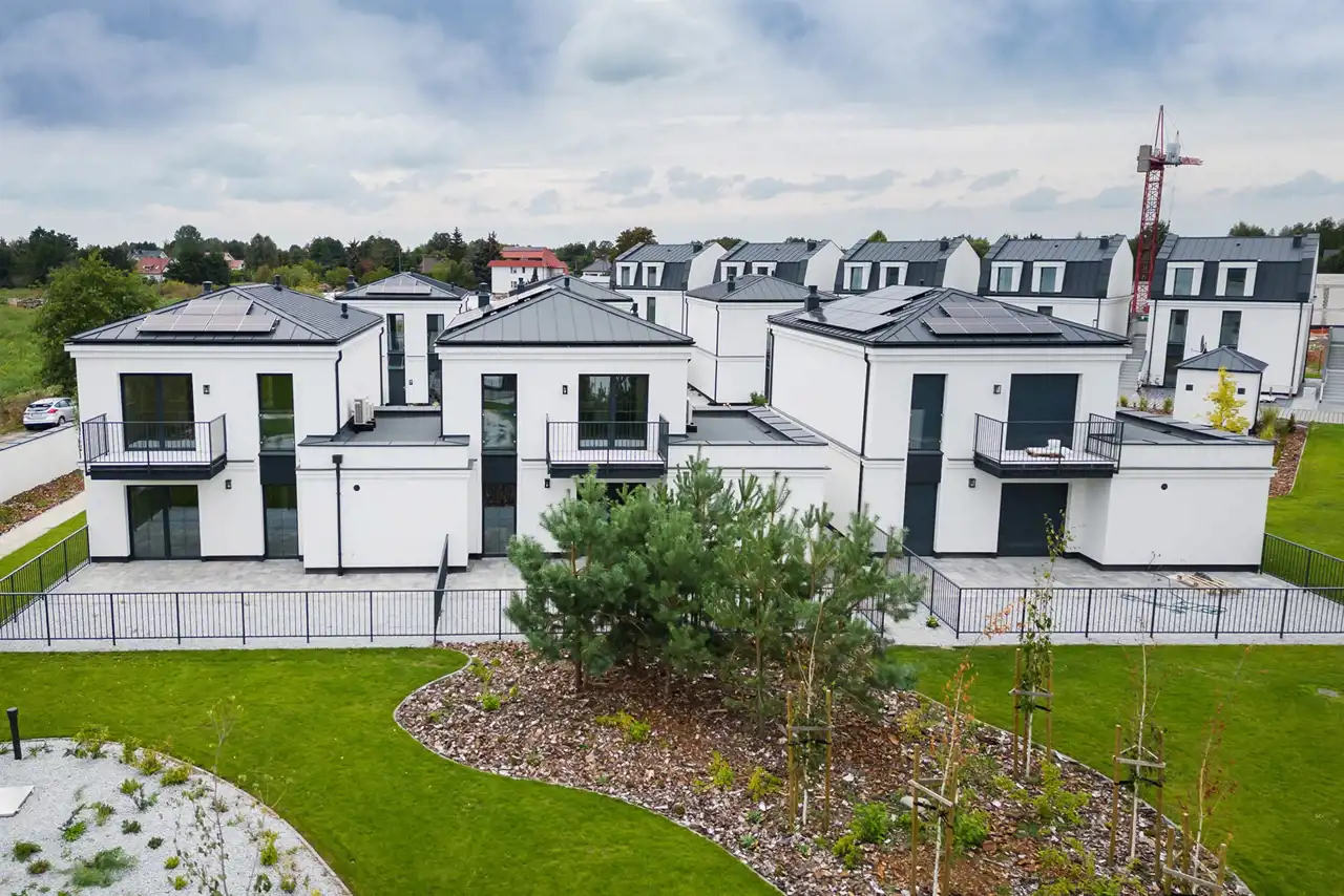 Domy i mieszkania wyposażone są w indywidualną pompę ciepła i ogrzewanie podłogowe.