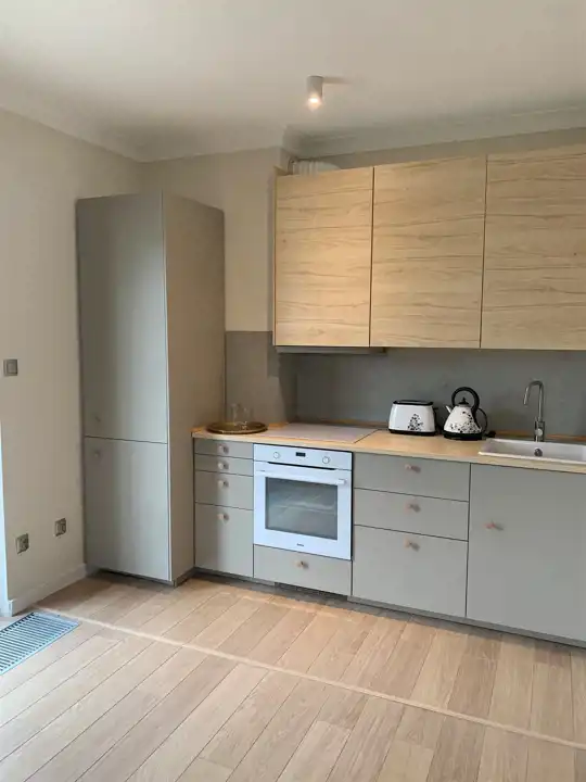 Mieszkanie jest gotowe do wprowadzenia, wykończone w wysokim standardzie, z wysokiej jakości zabudową meblową i wyposażeniem.