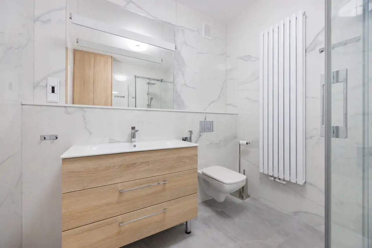 Ogrzewanie apartamentu jest obsługiwane przez inteligentny system Smarthome.