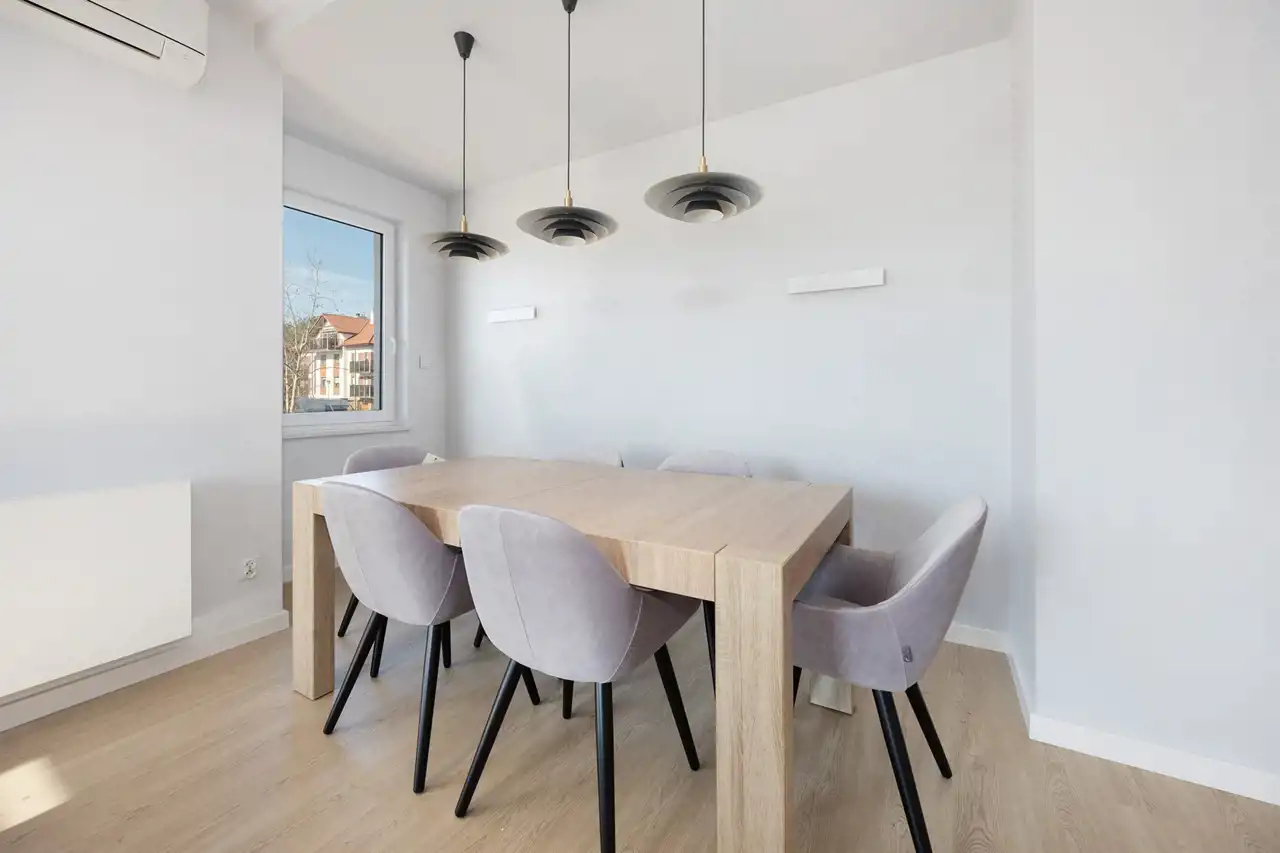 Apartament wykończony w standardzie premium, z dbałością o detale i wysoką jakość materiałów. Całość tworzy spójną, elegancką przestrzeń gotową do zamieszkania.