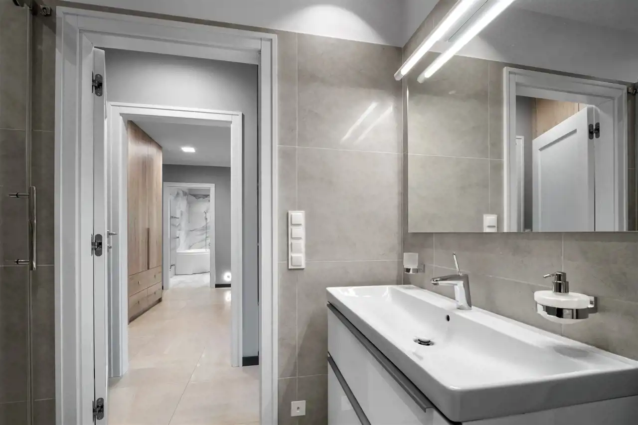 - 3 łazienki (jedna z narożną wygodną wanną, druga z zabudowanym dużym prysznicem, trzecia to osobne wc)