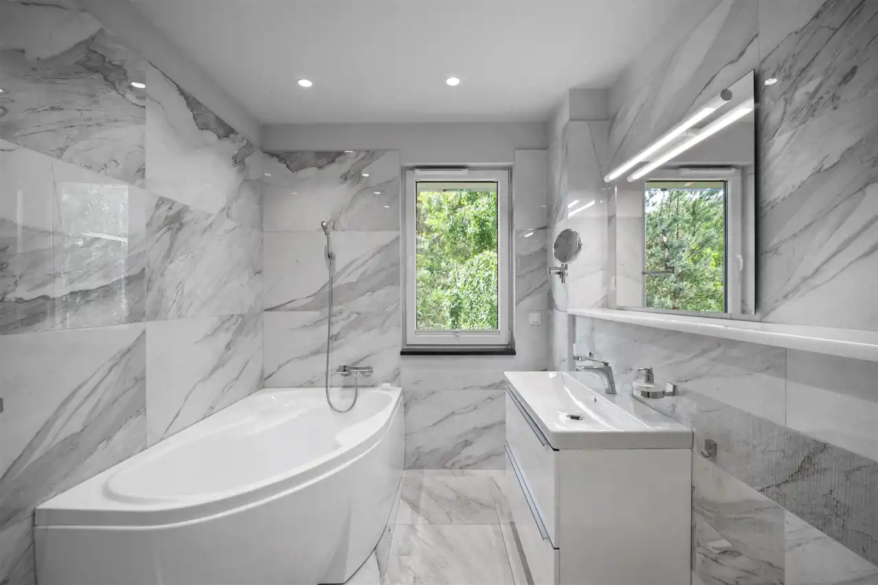 Wysokiej klasy sprzęty AGD firmy Miele. Ceramika łazienkowa Villeroy& Boch.