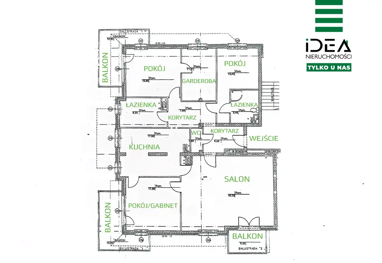 - 3 sypialnie: jedna z własną łazienką, druga z garderobą i narożnym balkonem, trzecia z narożnym balkonem