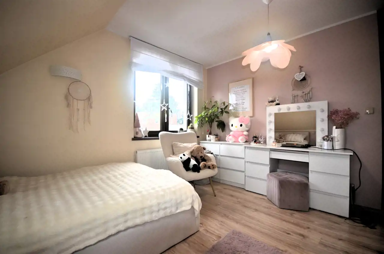 Budynek wolnostojący z użytkowym poddaszem, wybudowany w 2011 roku, zaprojektowany w klasycznej, ponadczasowej formie. Funkcjonalny układ pomieszczeń zapewnia wygodę na co dzień oraz wyraźny podział na strefę dzienną i prywatną.