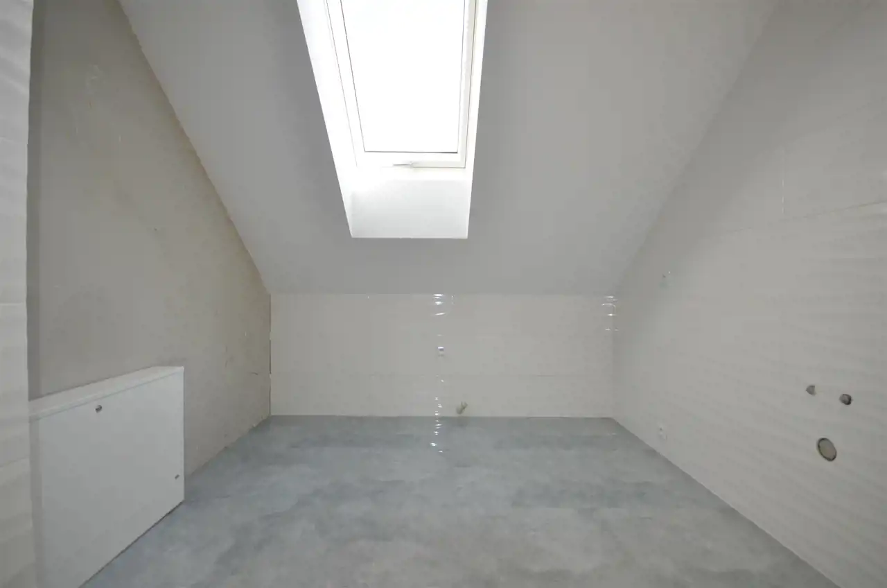 Parter domu to wiatrołap, przestronny hol z przejściem do salonu z kominkiem . Salon o dużym naświetleniu z wyjściem na duży taras i ogród. Otwarta kuchnia ze spiżarnią do własnej aranżacji, łazienka z prysznicem. Z przodu holu przejście do garażu i pomieszczenia kotłowni. Garaż wykończony, wraz zabudową stałą szafki.