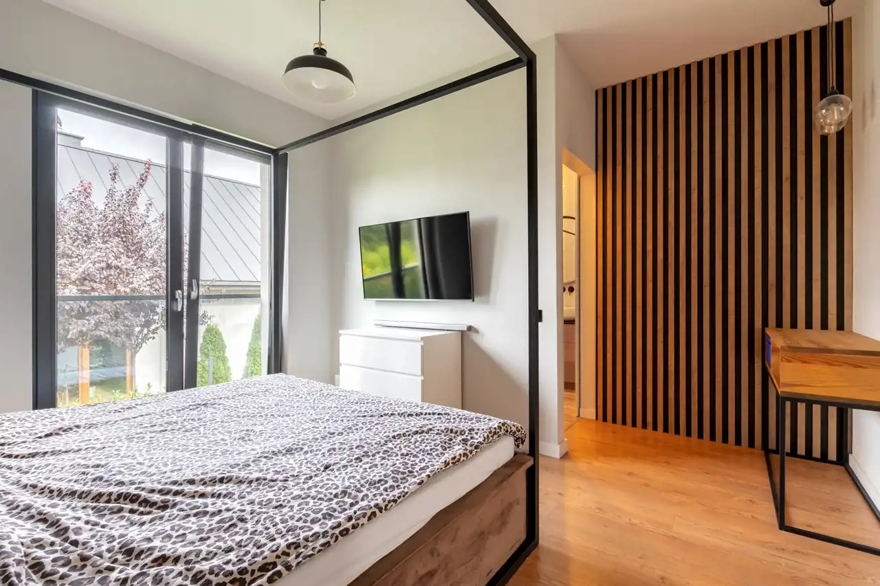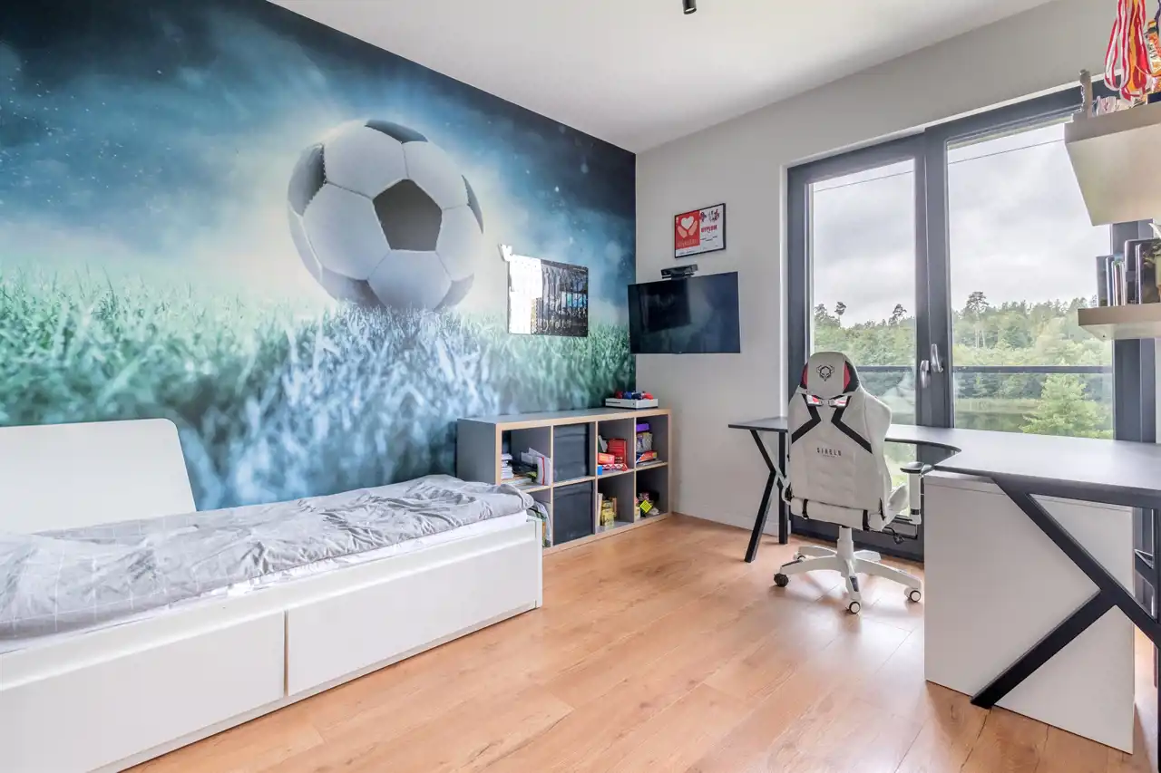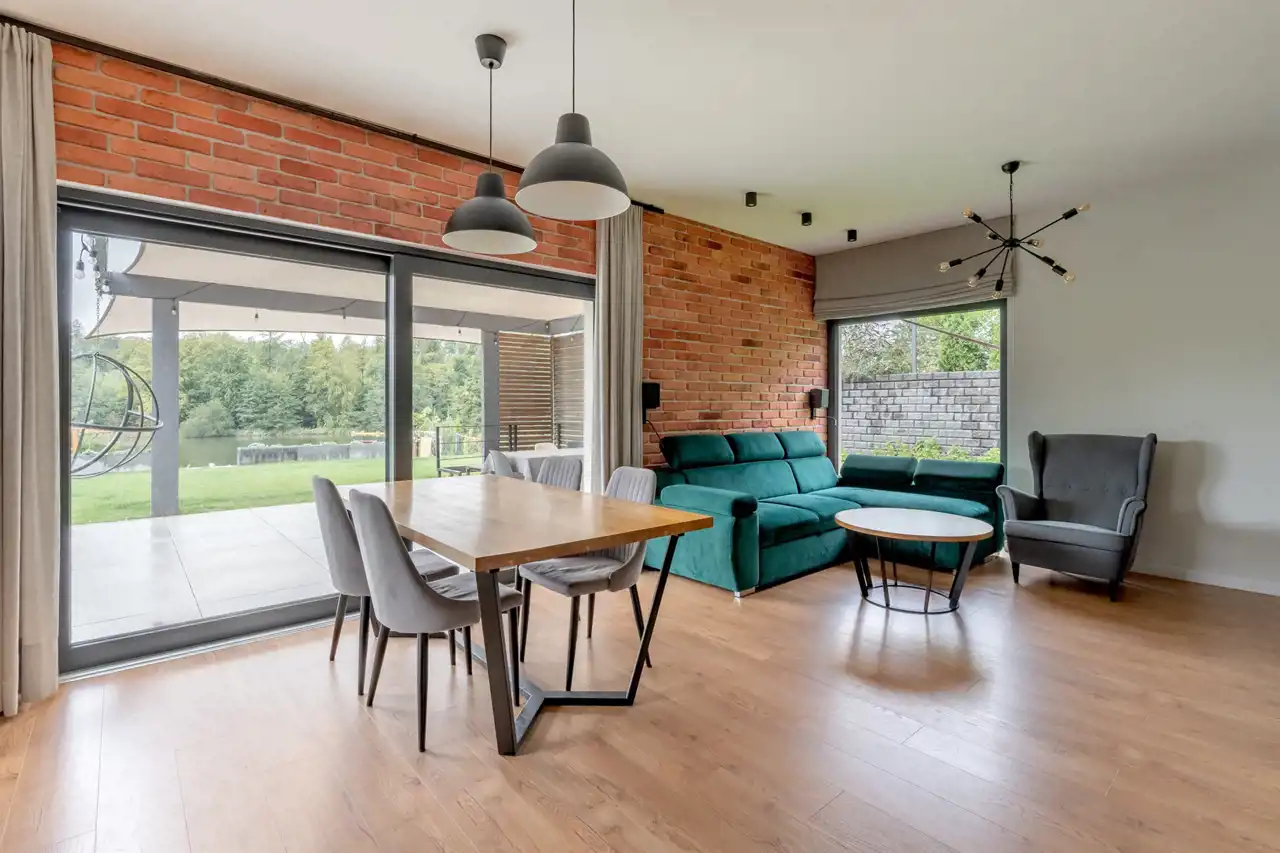 Już od wejścia widać, że to nieruchomość klasy premium. Przestronne wnętrza wypełnia naturalne światło, a duże przeszklenia kadrują widok jeziora, które towarzyszy domownikom o każdej porze dnia – czy to z salonu, kuchni, sypialni czy tarasu. To nie jest zwykły dom nad wodą – to pełnoprawna rezydencja nad jeziorem, gdzie każdy szczegół zaprojektowano z myślą o wygodzie i prestiżu.