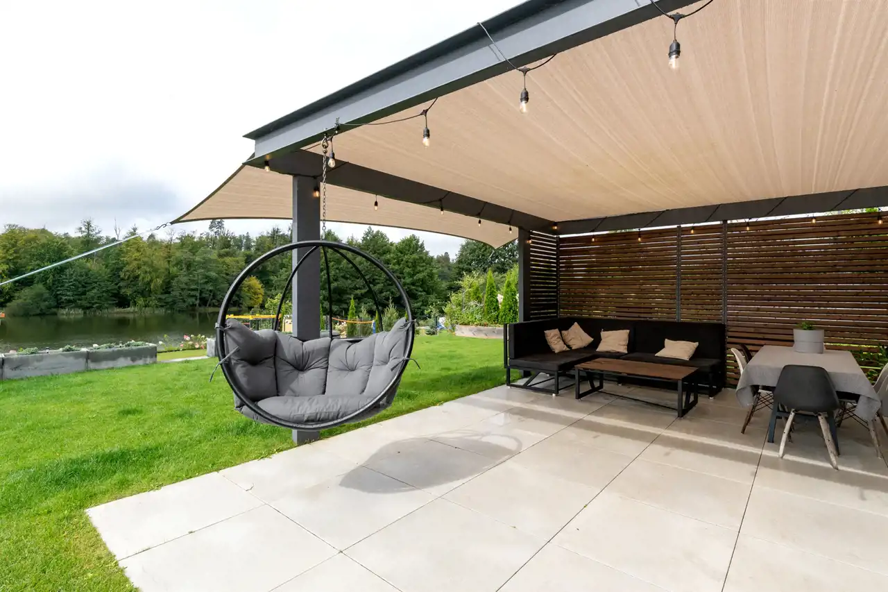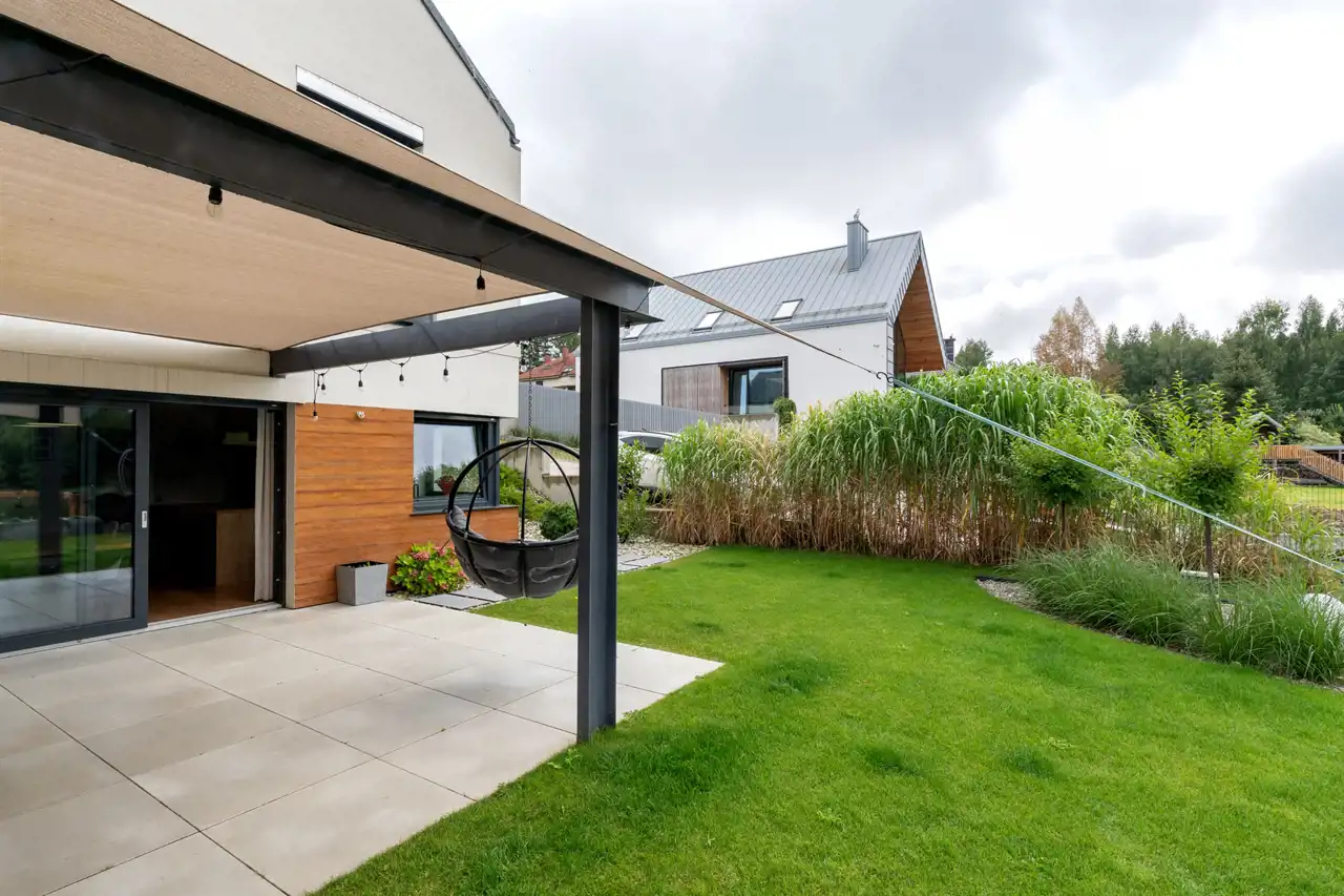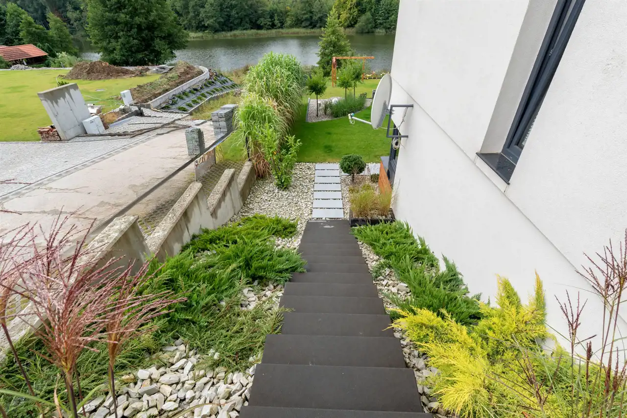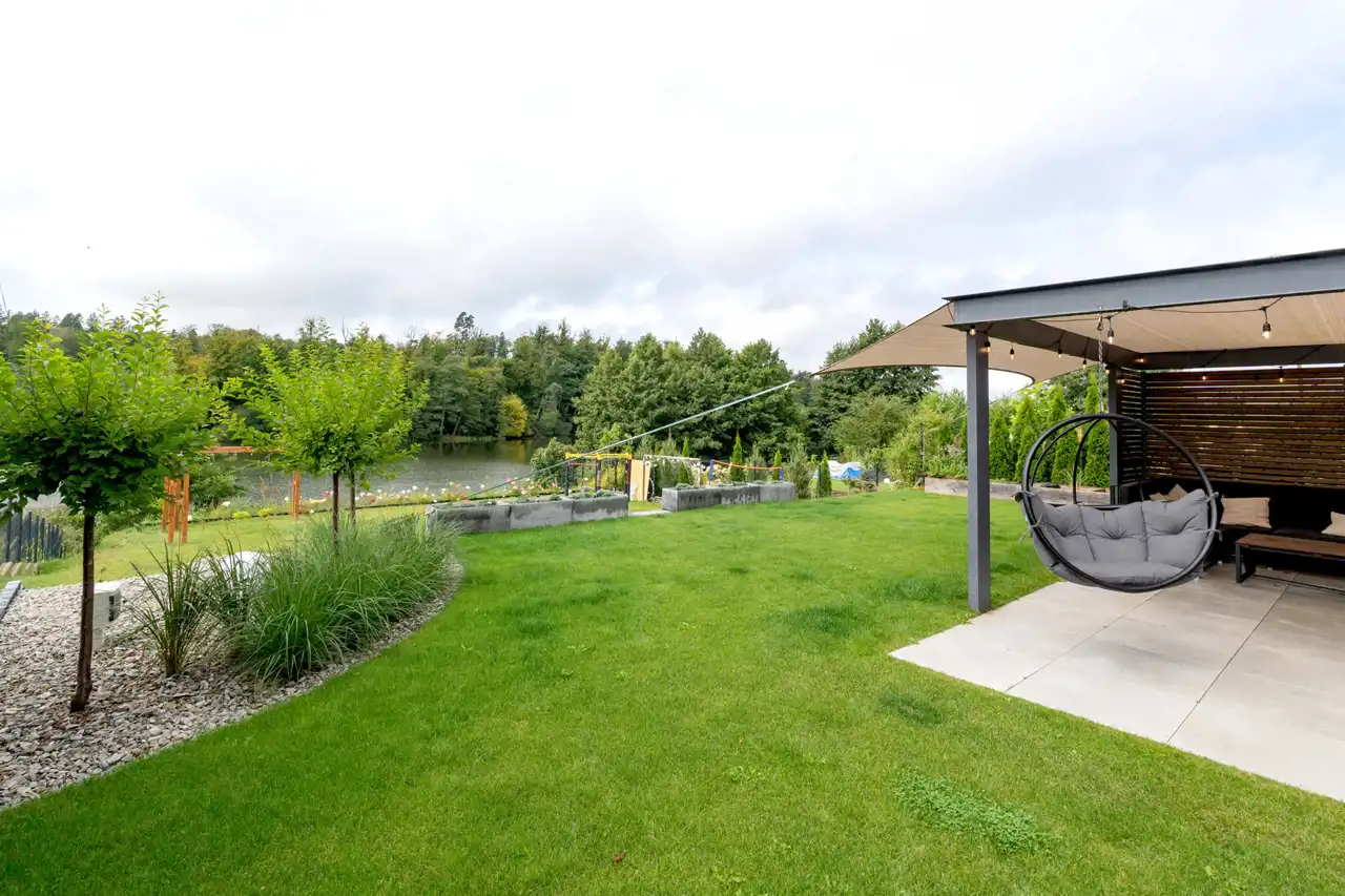 Otoczenie domu zachwyca spokojem i prywatnością. Z jednej strony mamy naturę, ciszę i bezpośredni dostęp do jeziora, a z drugiej – pełną infrastrukturę miasta w zasięgu kilku minut jazdy. To idealne miejsce dla osób, które chcą połączyć prestiż, luksus i wygodę z bliskością przyrody.