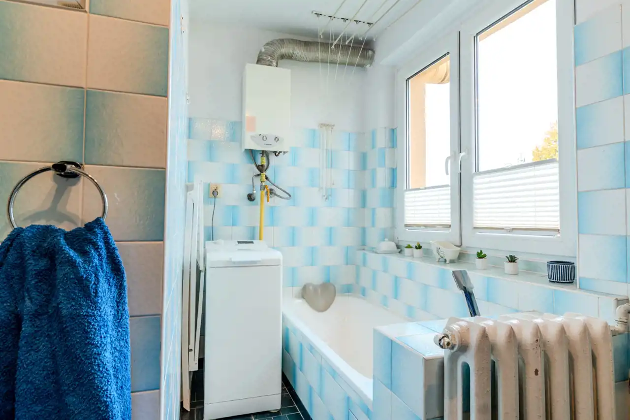 Dwa piece gazowe: nowy na parterze, drugi (ok. 10-letni) na piętrze.