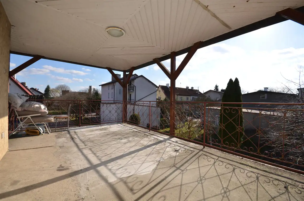Dom o powierzchni użytkowej 123,10 m2/całkowitej 214,98m2 odświeżony, jednokondygnacyjny z poddaszem nieużytkowym, podpiwniczony o konstrukcji tradycyjnej murowanej posadowiony na działce o powierzchni 513m2 . Dach pokryty blachodachówką trapezową.