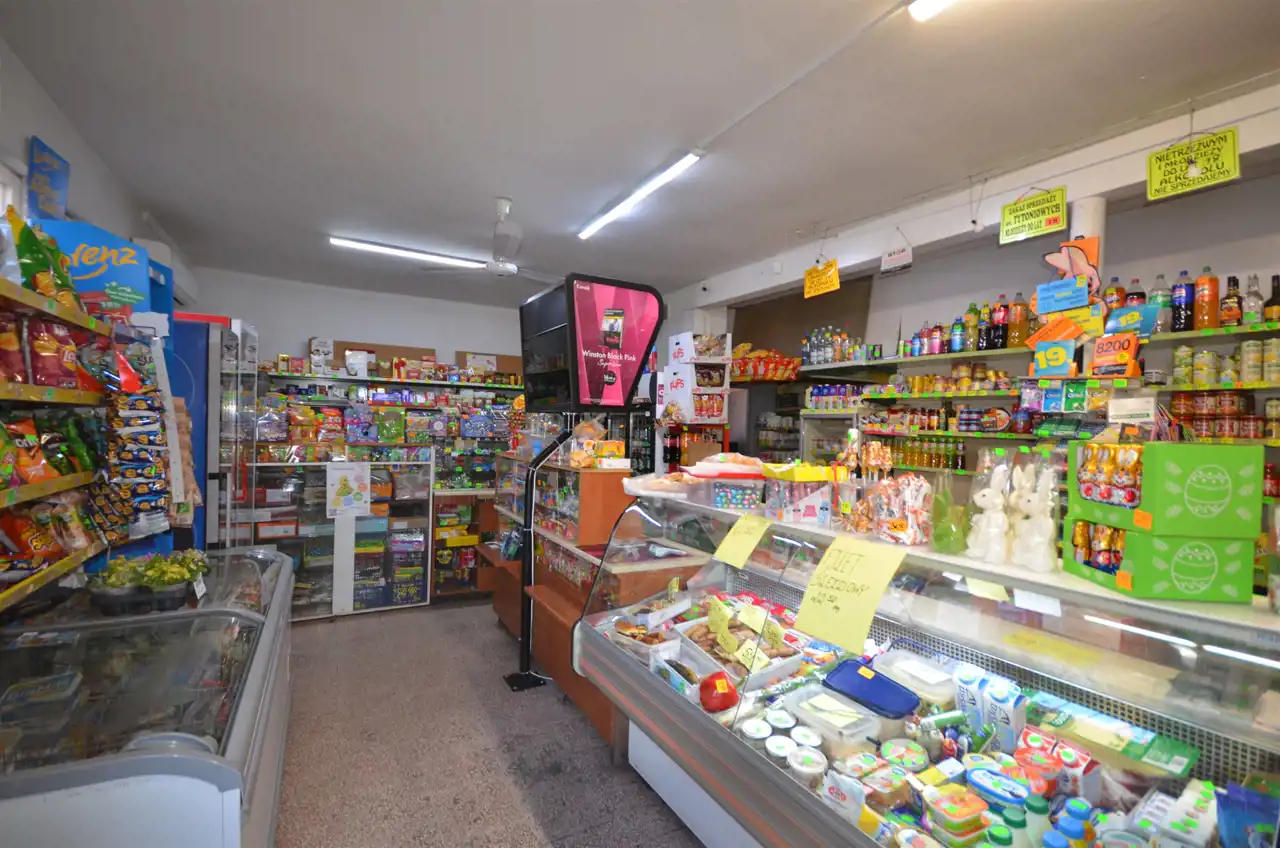 Od strony ulicy znajduje się lokal usługowy-od lat działający sklep spożywczy o pow. 56,97m2. Cena działającego sklepu to koszt dodatkowy 260 000zł, podlega negocjacji przy łącznym zakupie.