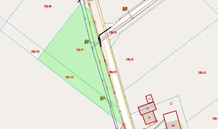 Działka 266/97 powierzchnia 937 m2 oraz działka 266/102 powierzchnia 328 m2. Dodatkowo przy sprzedaży nieruchomości przyszły nabywca nabędzie udziały ułamkowe w drogach dojazdowych