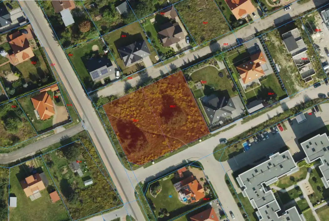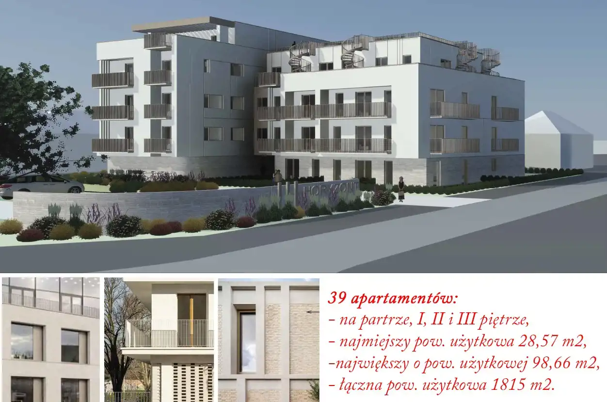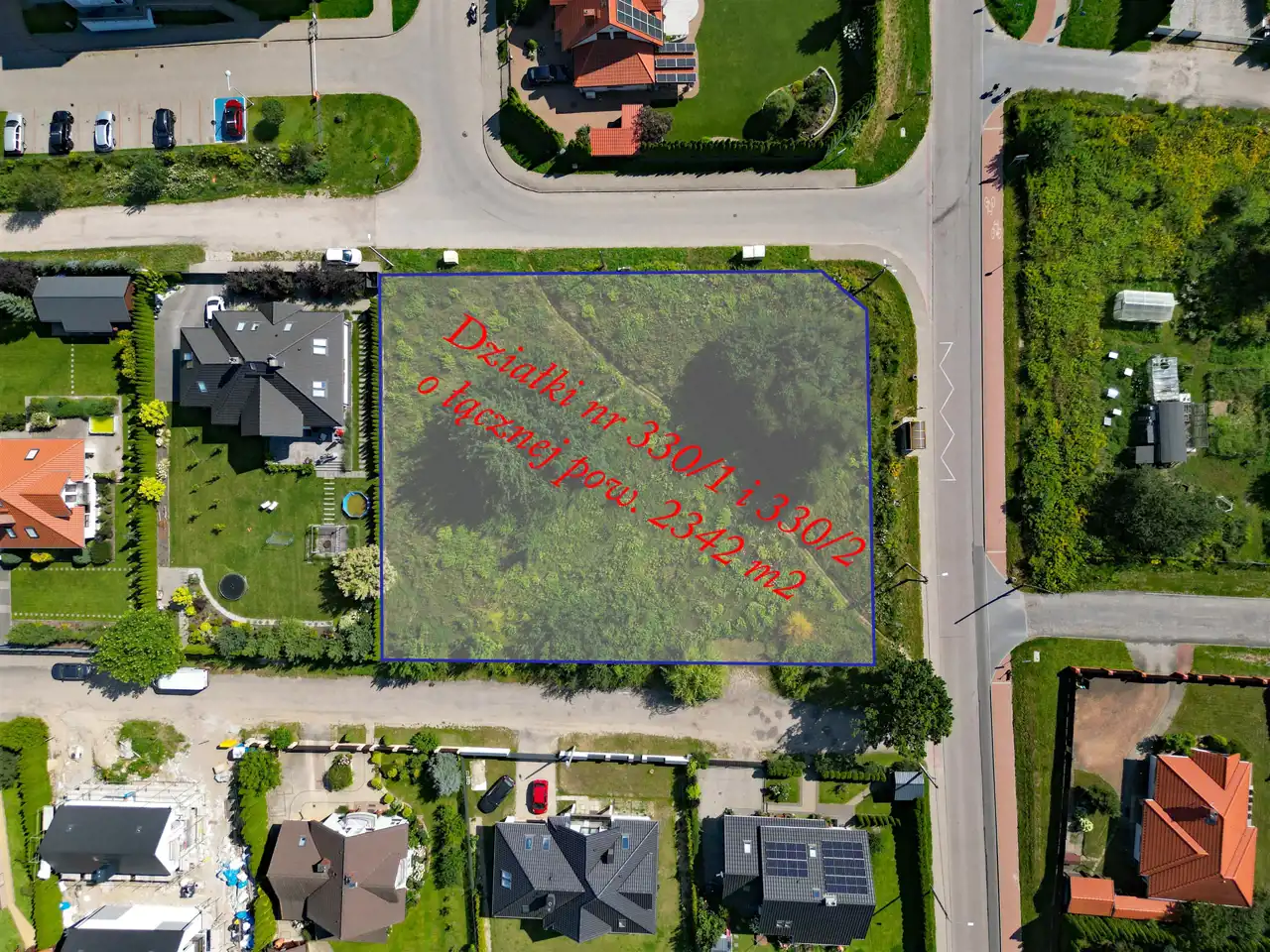 Oferta obejmuje działki nr 330/1 i 330/2 o łącznej powierzchni 2342 m², z pozwoleniem na budowę budynku mieszkalnego składającego się z 39 apartamentów: