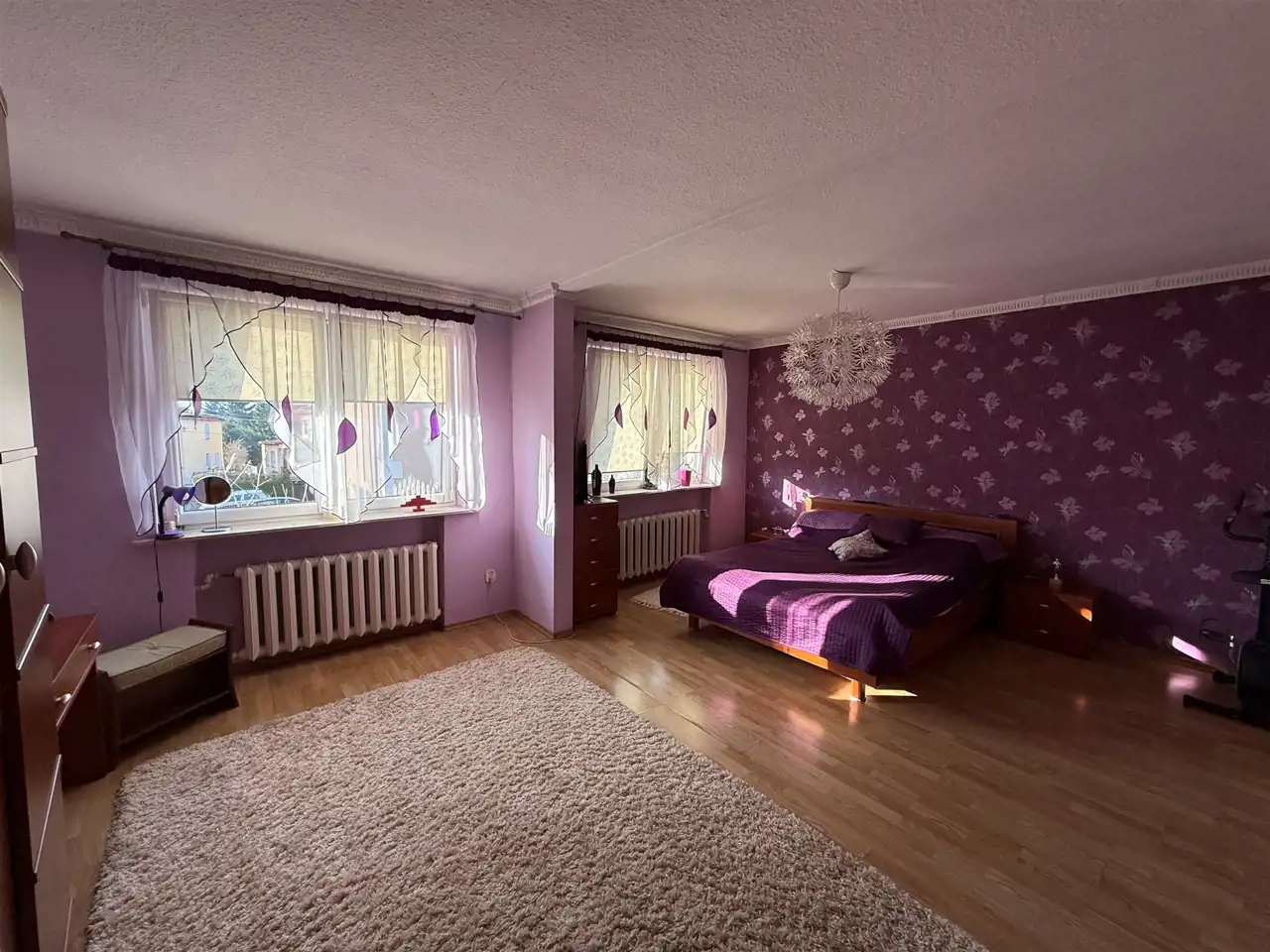 *duża sypialnia z balkonem z której można wyodrębnić 2 pokoje