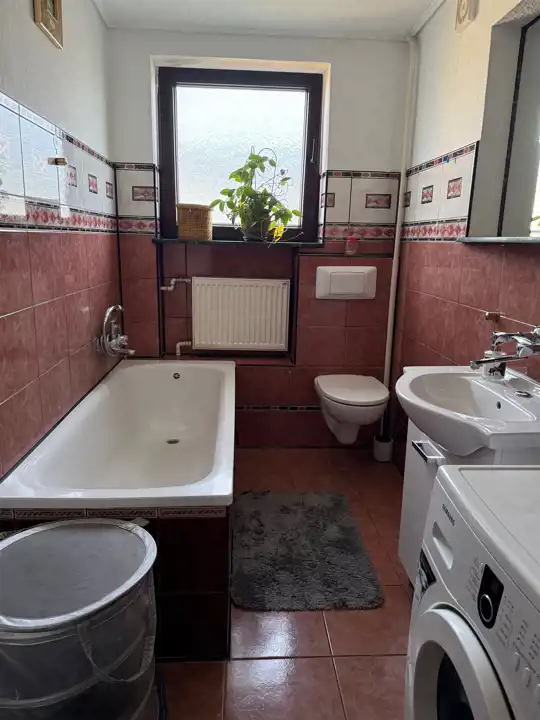 * łazienka z wanną oraz WC
