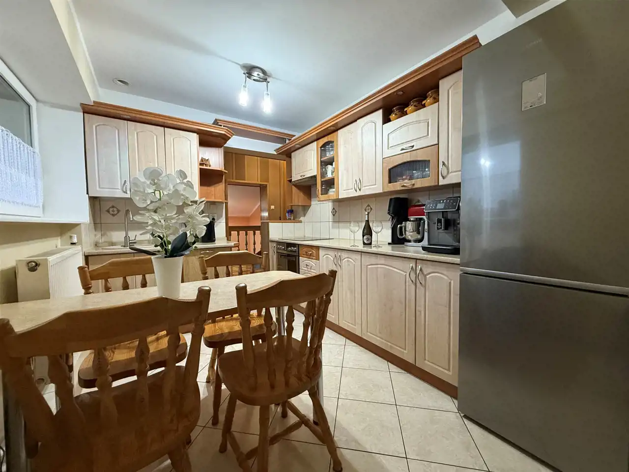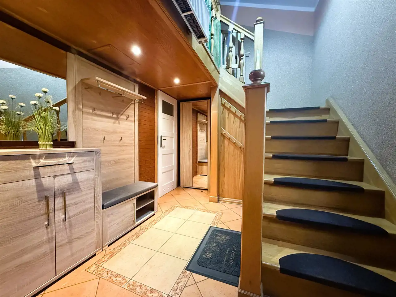 Budynek główny: Dom wolnostojący, 2 kondygnacje, 135,2 m². 4 pokoje, oddzielna kuchnia z zabudową, przestronne łazienki (wanna + osobna z prysznicem). Stan bardzo dobry – gotowy do zamieszkania.