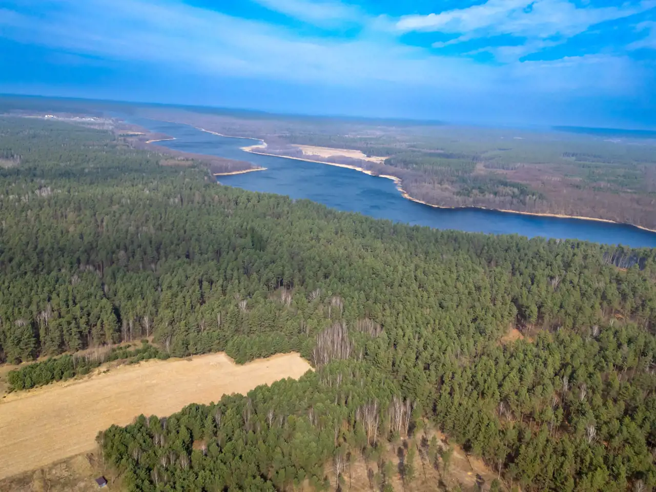Bliskość jeziora, lasów i otwartej przestrzeni.