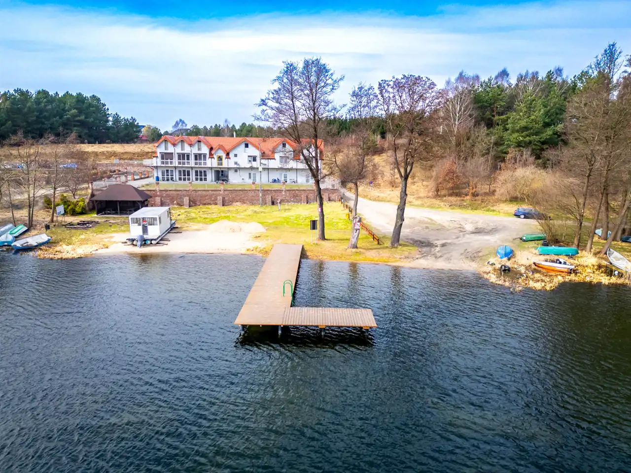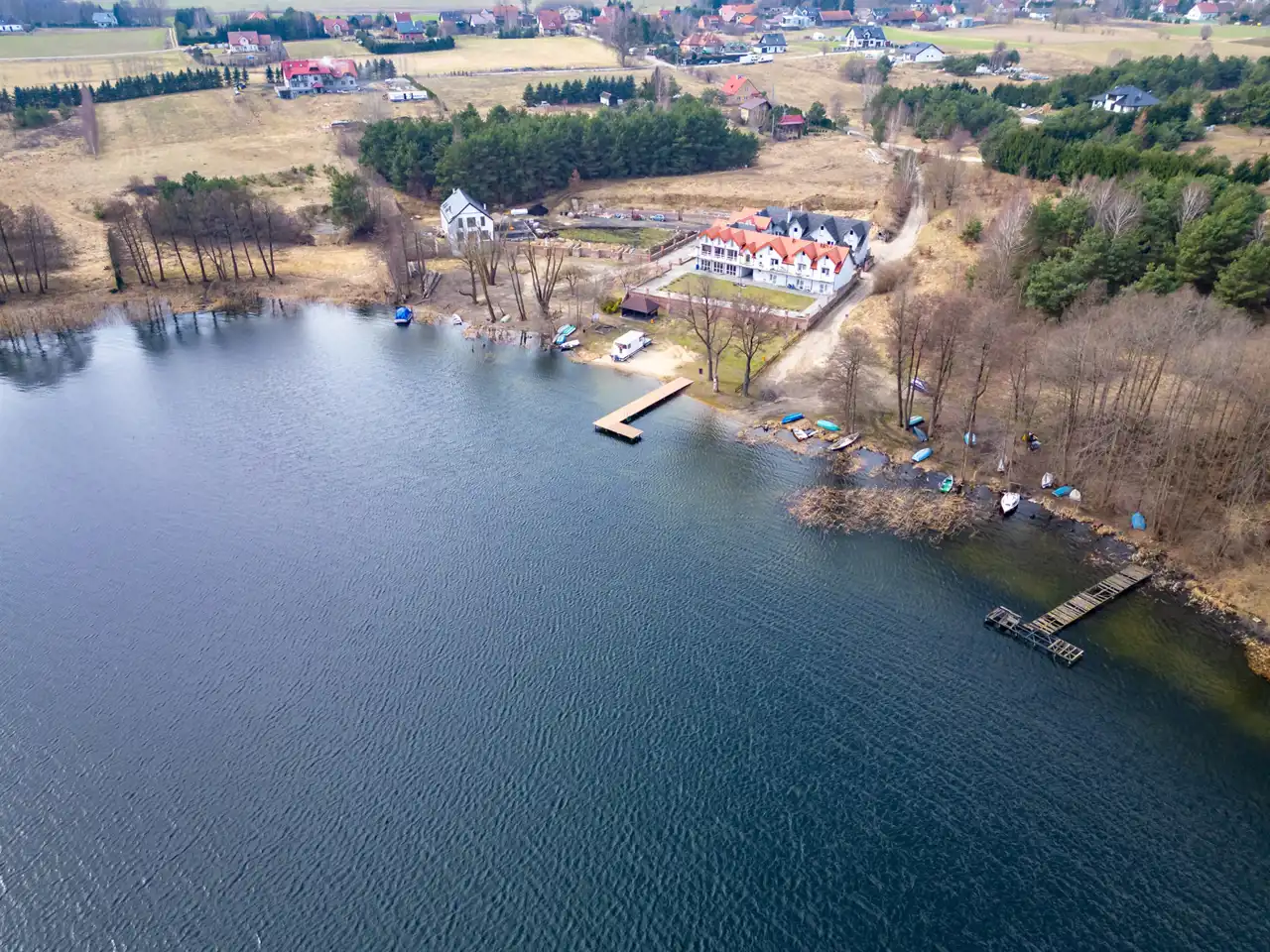 Zwierzewo to lokalizacja, która daje rzadkie połączenie — bliskość natury, jeziora i terenów rekreacyjnych, a jednocześnie szybki dostęp do Ostródy i pełnej infrastruktury miasta. W pobliżu znajduje się jezioro Szeląg Wielki — jedno z tych mazurskich jezior, które robią wrażenie przestrzenią, krajobrazem i spokojem.