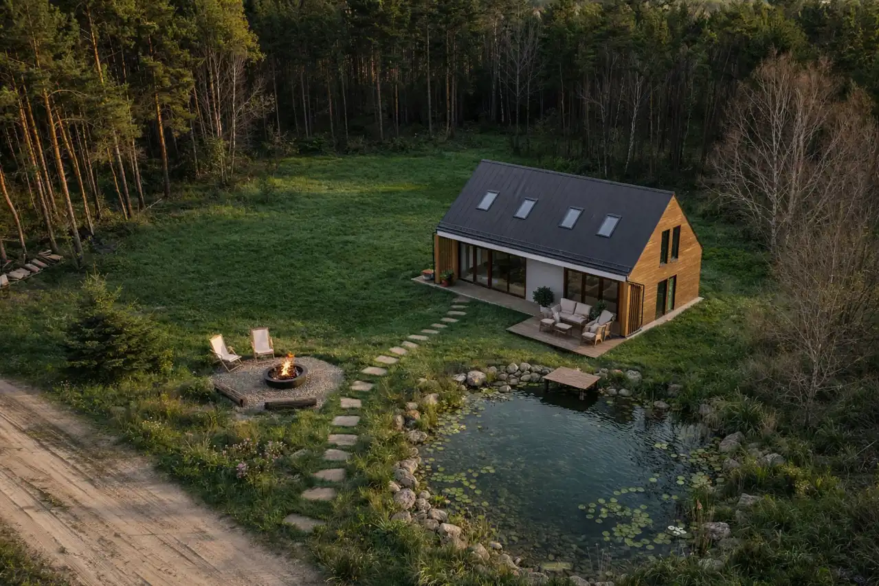 Co więcej, działka daje również możliwość stworzenia prywatnego stawu, co jeszcze mocniej podkreśla jej wyjątkowy charakter i pozwala zbudować tu przestrzeń naprawdę skrojoną pod własny styl życia. To nie jest zwykła działka pod budowę. To miejsce, w którym można stworzyć własny azyl — z domem, zielenią i prywatną przestrzenią do odpoczynku.