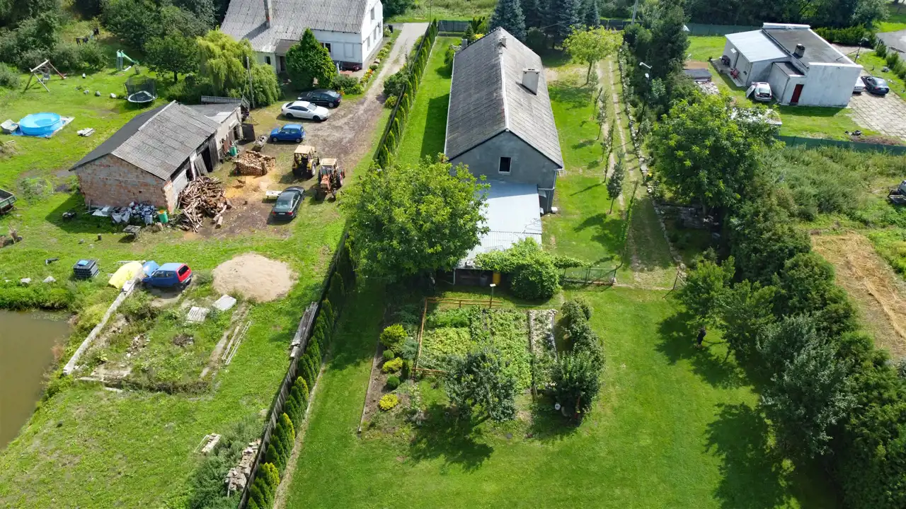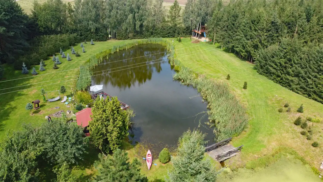 Działka oferuje również wiele dodatkowych udogodnień, takich jak domek na drzewie, altana, dwa kajaki oraz przyczepa kempingowa. Sad oraz las iglasty stanowią doskonałe miejsca do spacerów i relaksu na świeżym powietrzu. Znajduje się tu także zadbany ogródek, idealny do uprawy własnych warzyw.