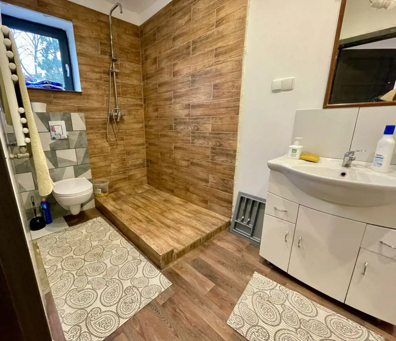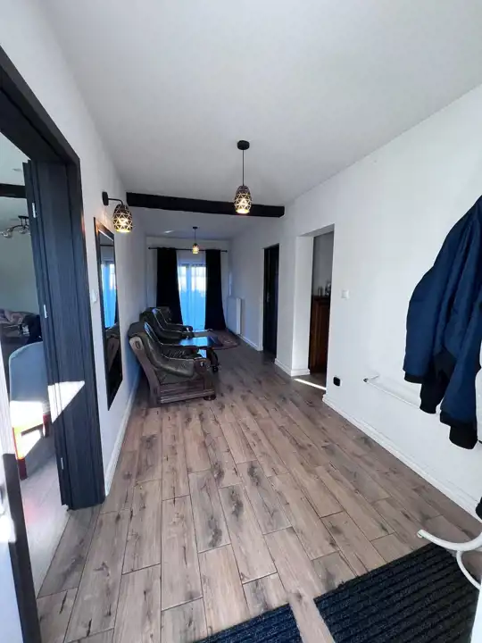 Dom o powierzchni 206 m² + poddasze jest częściowo wykończony, jednak wymaga jeszcze dalszych prac wykończeniowych, aby dostosować go do własnych potrzeb i gustów.