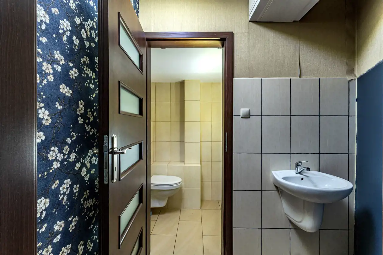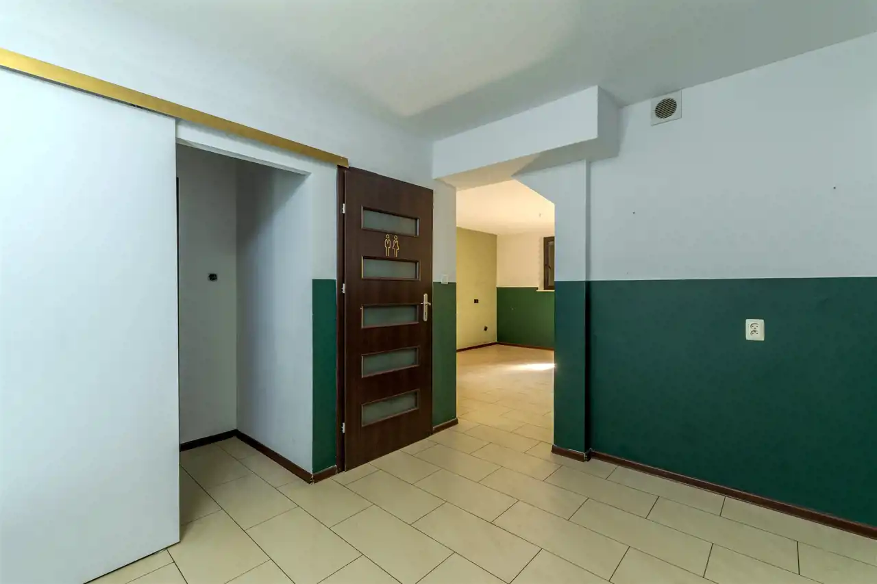 Drugi lokal, o powierzchni 34,4 m², posiada niezależne wejście od strony dziedzińca. Tworzy go większe pomieszczenie główne, mniejsze pomieszczenie użytkowe oraz zaplecze socjalne z łazienką. Obecnie funkcjonuje tu salon fryzjerski, jednak układ pozwala na dowolną adaptację pod inną działalność. Istnieje także możliwość połączenia obu części w jedną całość, co daje dodatkowe opcje aranżacyjne i zwiększa potencjał użytkowy.